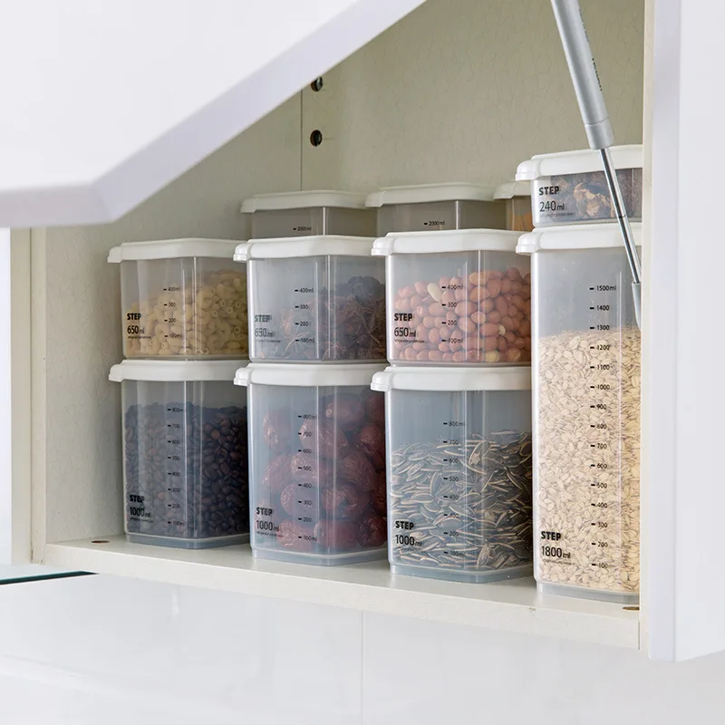 Пластиковые герметичные банки разных размеров, кухонный ящик для хр...