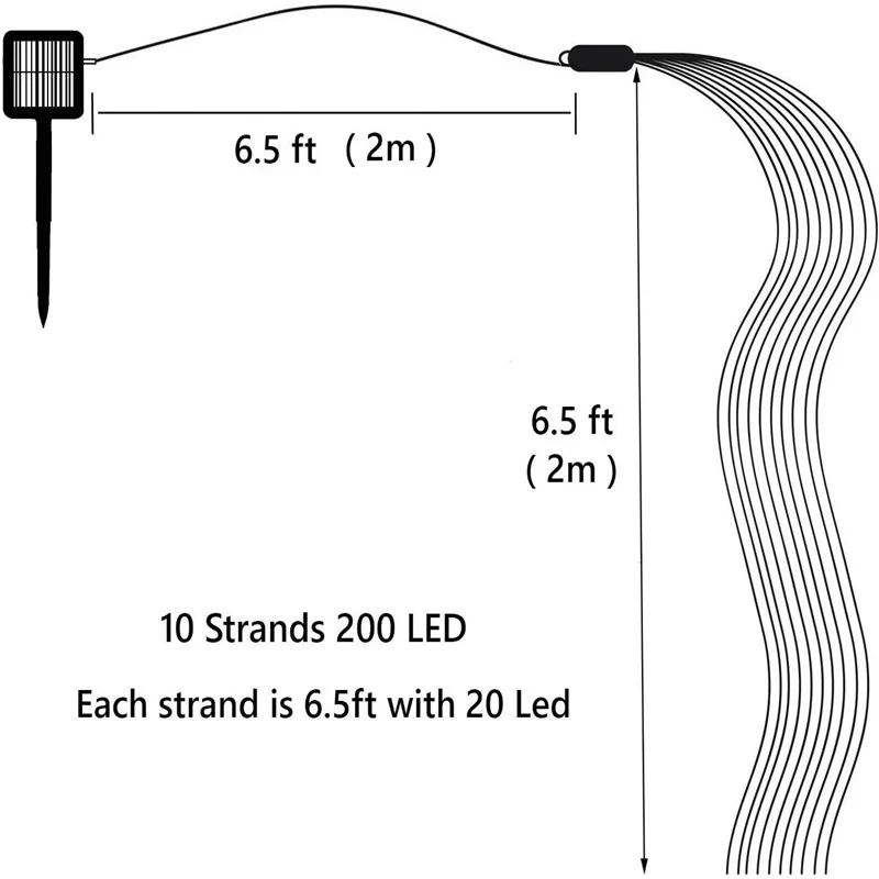Светодиодная уличная гирлянда на солнечной батарее, 10 струн, 200 светодиодов