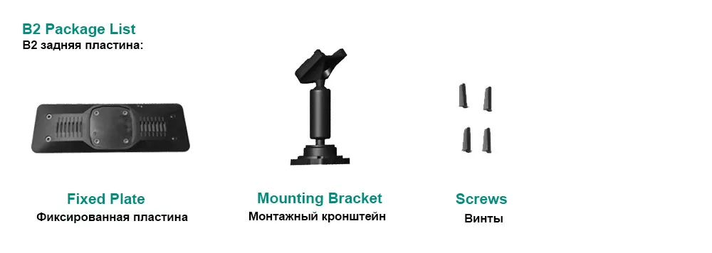 Для большинства 4,3 дюйма, 5 дюймов, 7 дюймов и всех зеркальных камер. (Нужны резинки) когда под резиновой прокладкой нет винтов, вам нужно зафиксировать заднюю часть зажима на диктофон с резиновыми лентами, а затем зафиксировать кронштейн на пластине с помощью винтов.