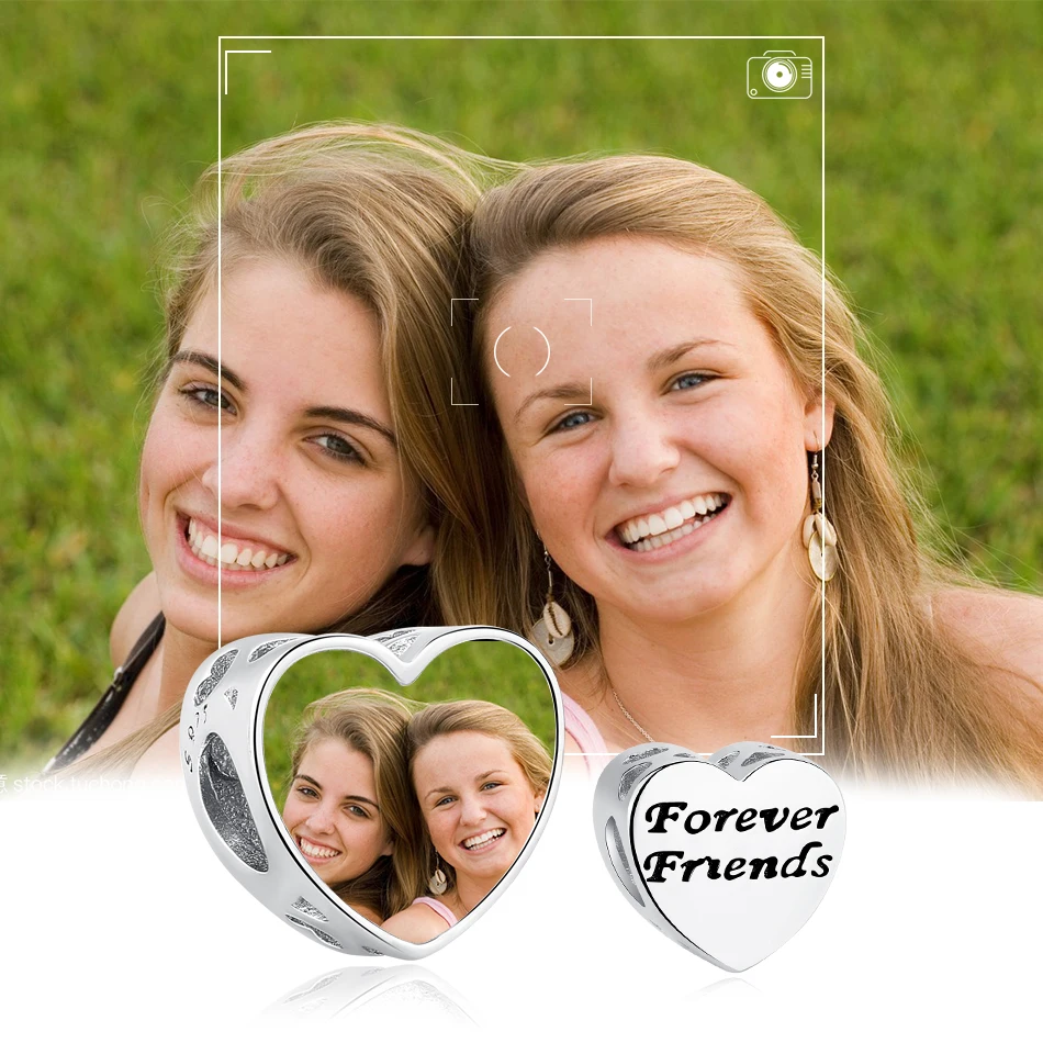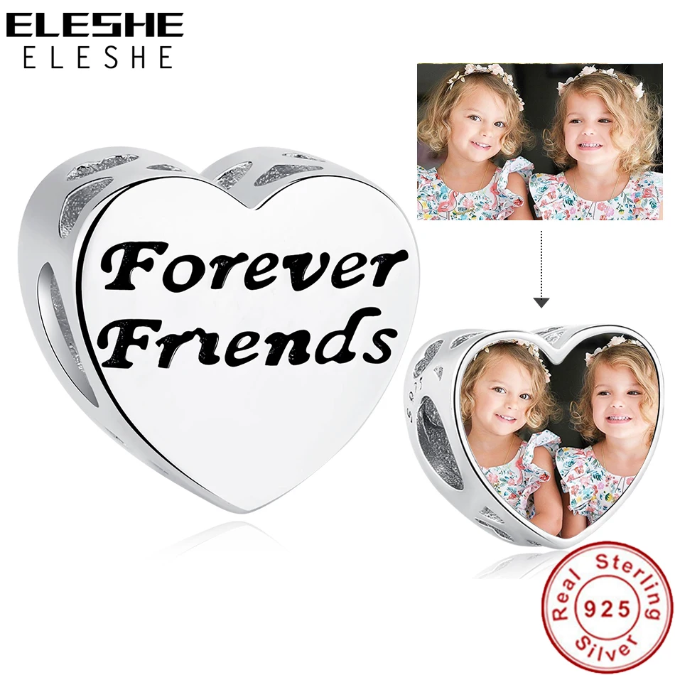 ELESHE 100% 925 стерлингового серебра в форме сердца с подвески для лучших друзей на заказ фото драгоценные бусины, подходят к оригинальным женский браслет, ювелирное изделие, подарок