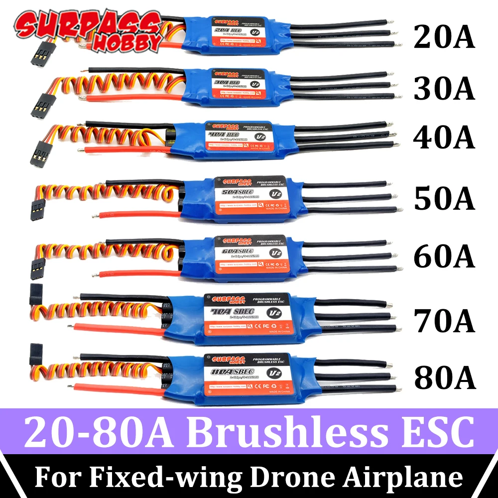 Программируемый бесщеточный ESC SURPASS HOBBY, 1 шт., 2 шт., SBEC BEC, 20A, 30A, 40A, 50A, 60A, 70A, 80A, для дрона с неподвижным крылом, вертолета, самолета
