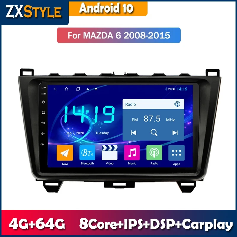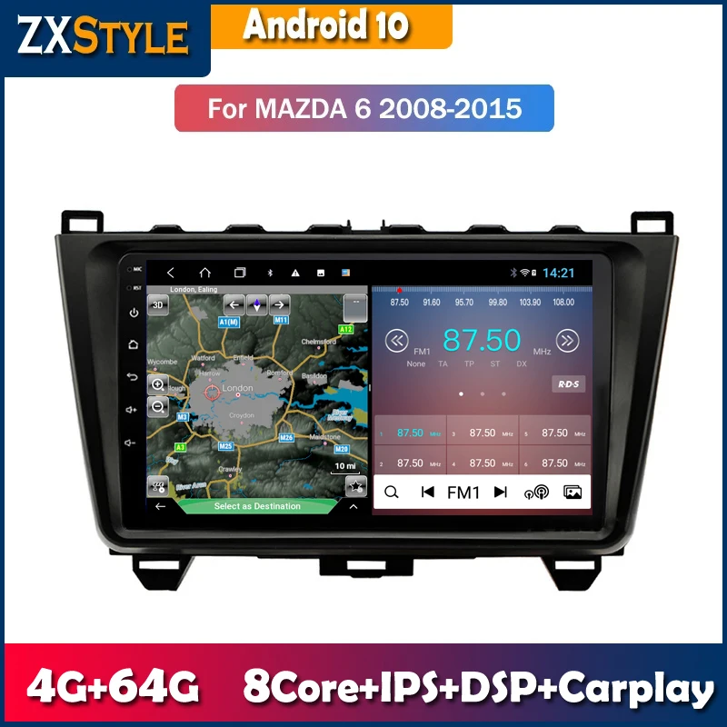 Автомагнитола 2DIN, Android 10,0, мультимедийный видеоплеер для Mazda 6 2007, 2008-2015, GPS-навигация, DVD, RDS, Carplay