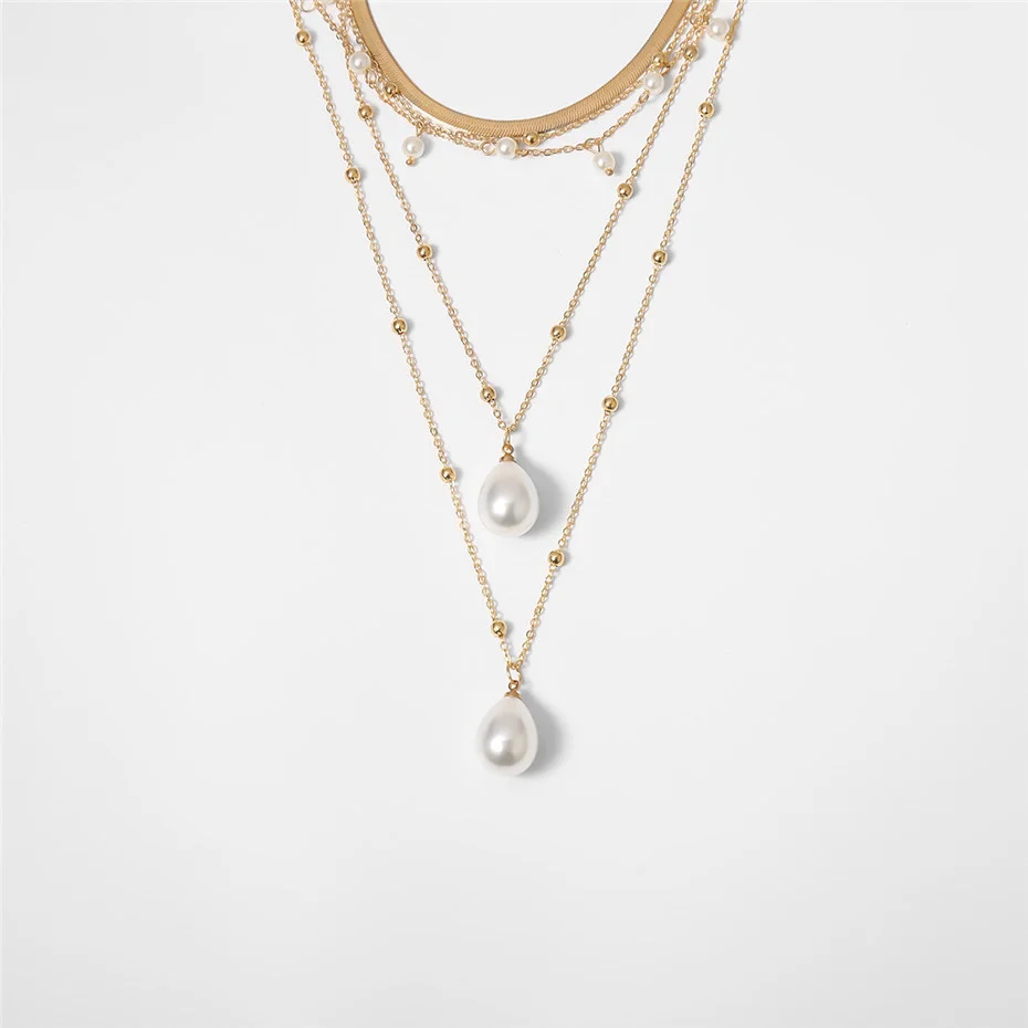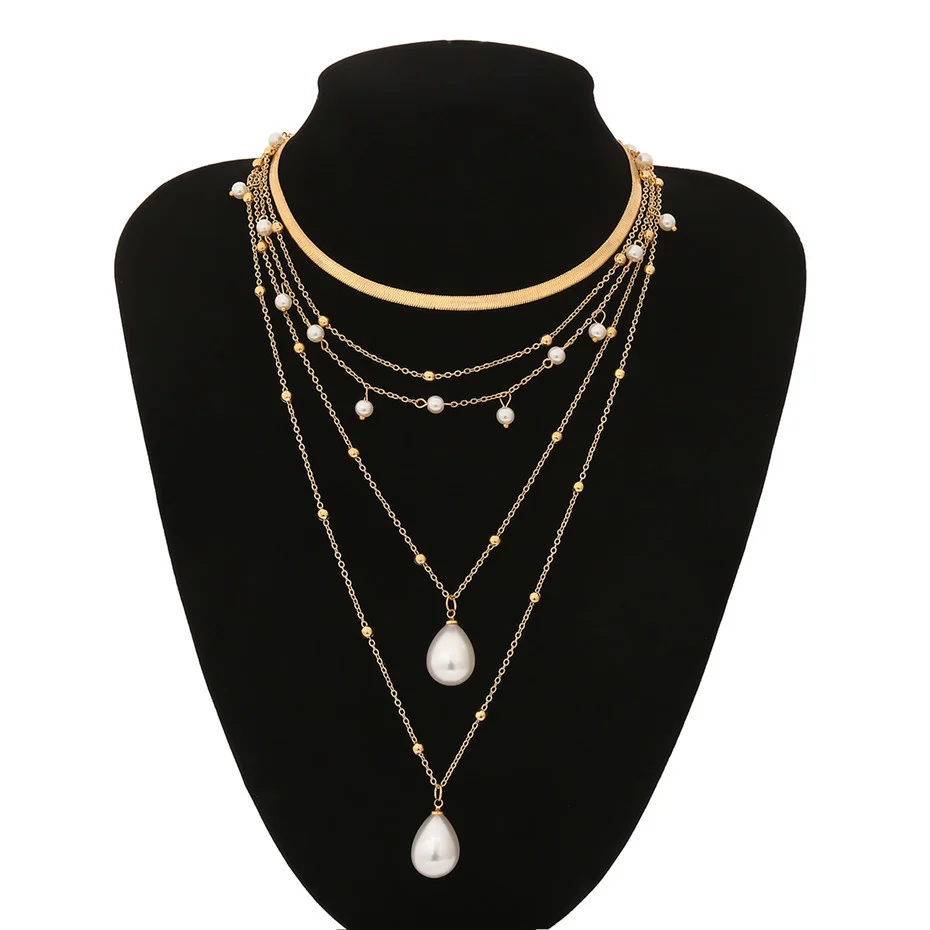 Винтажное многослойное ожерелье-чокер на шею с подвеской для женщин модное Золотое жемчужное ожерелье, колье, ювелирные изделия аксессуары