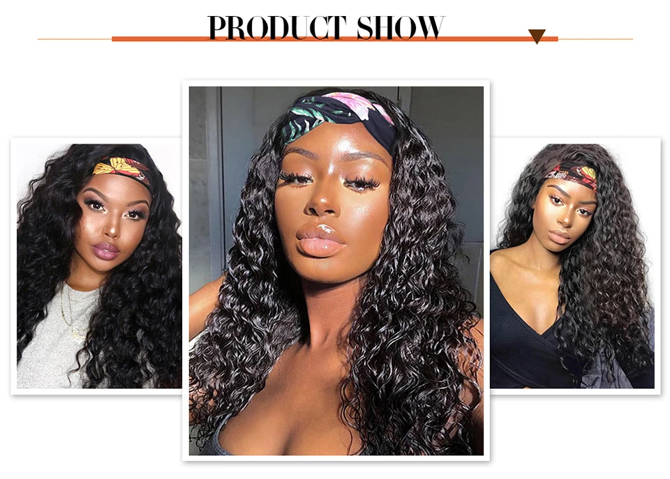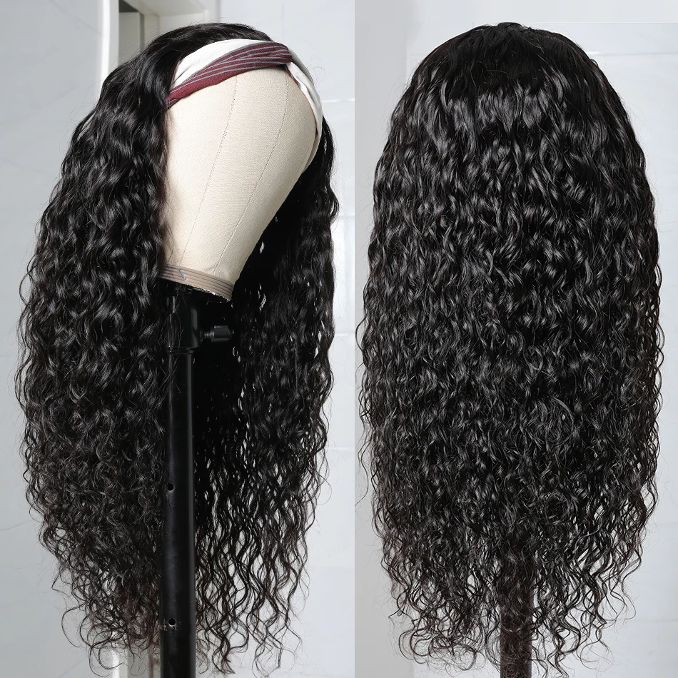 Бразильские волнистые парик с головной повязкой человеческие волосы...