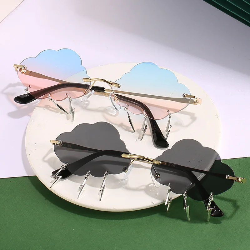 Облако солнцезащитные очки Женская Двухцветная модная обувь с изображением облаков, молнии и необычные очки без оправы декоративные вечерние солнцезащитные очки для женщин