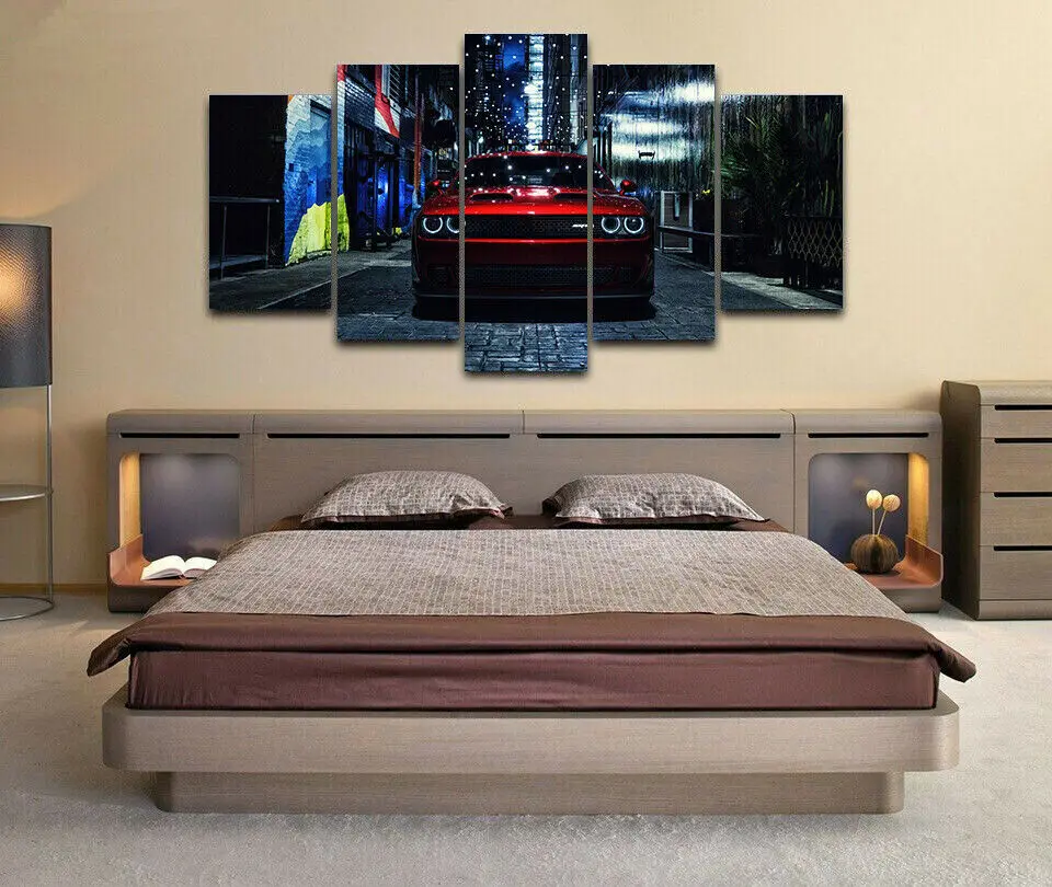 Красный Dodge Charger, спортивный автомобиль, 5 панелей, печать на холсте, настенный плакат, домашний декор, HD картины без рамы, картины для гостиной