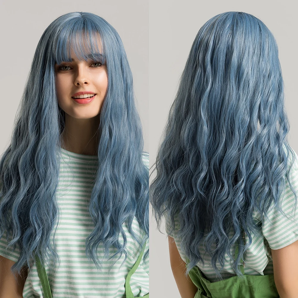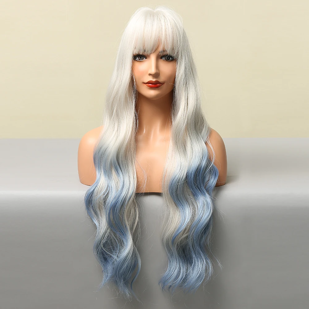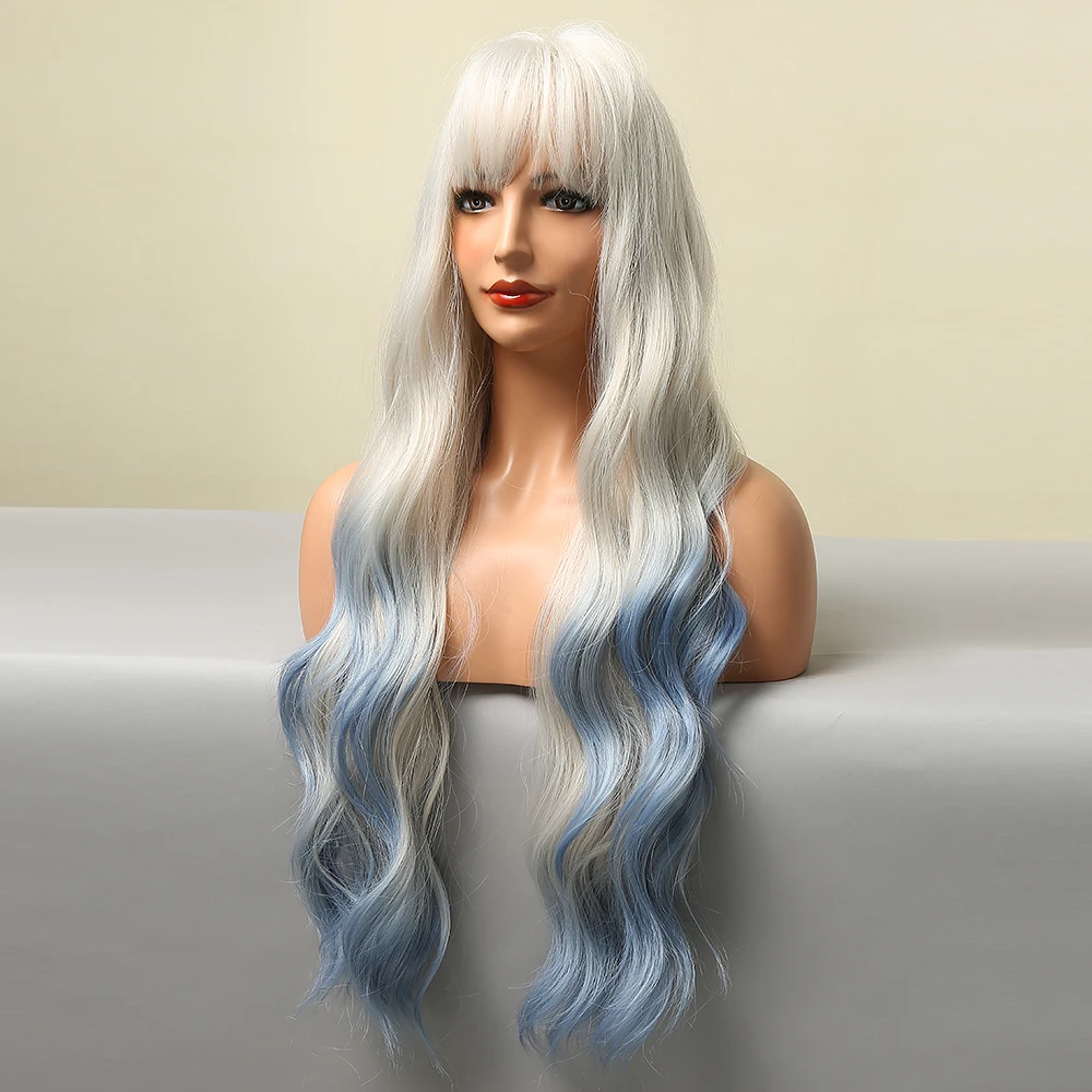Женские синтетические парики с эффектом омбре henmargu, длинные волнистые волосы синего и белого цвета, термостойкие парики из натуральных волос для косплея