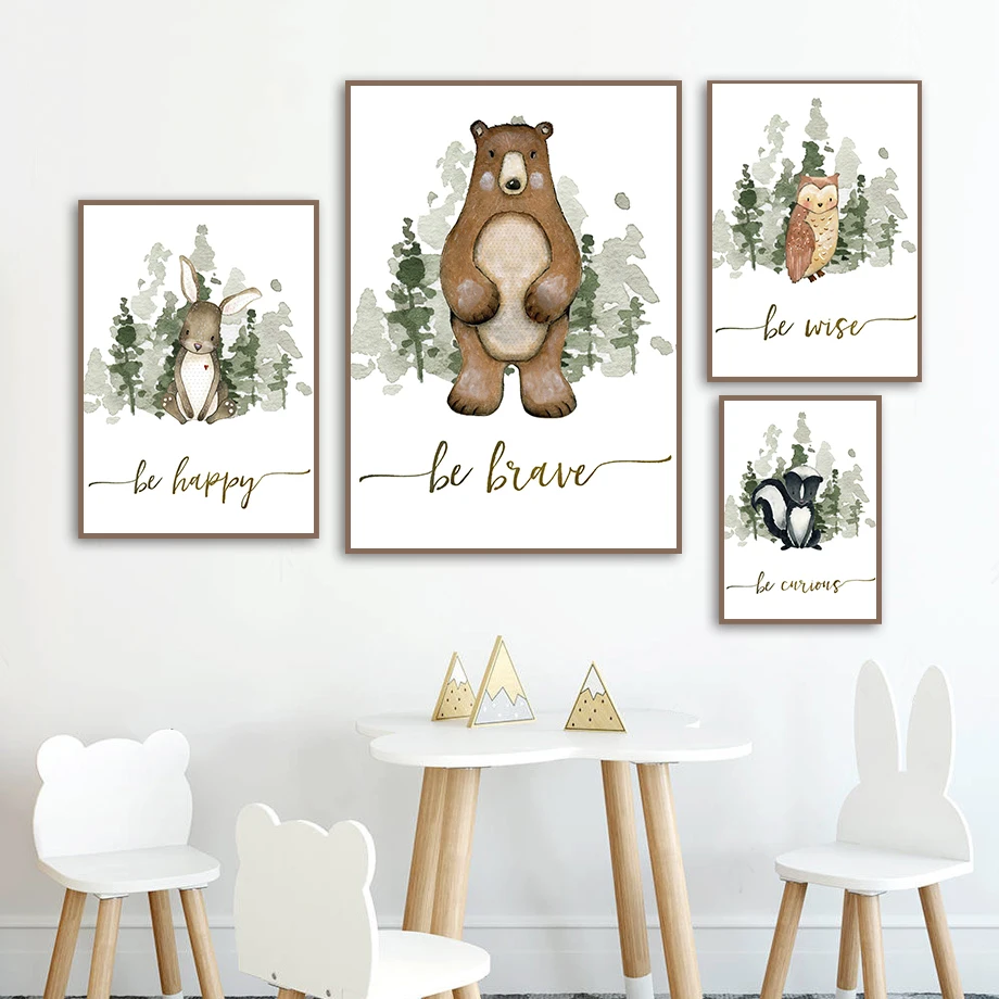 Медведь Олень Кролик Лесной детский абстрактный Бохо настенная Карт...