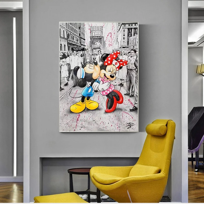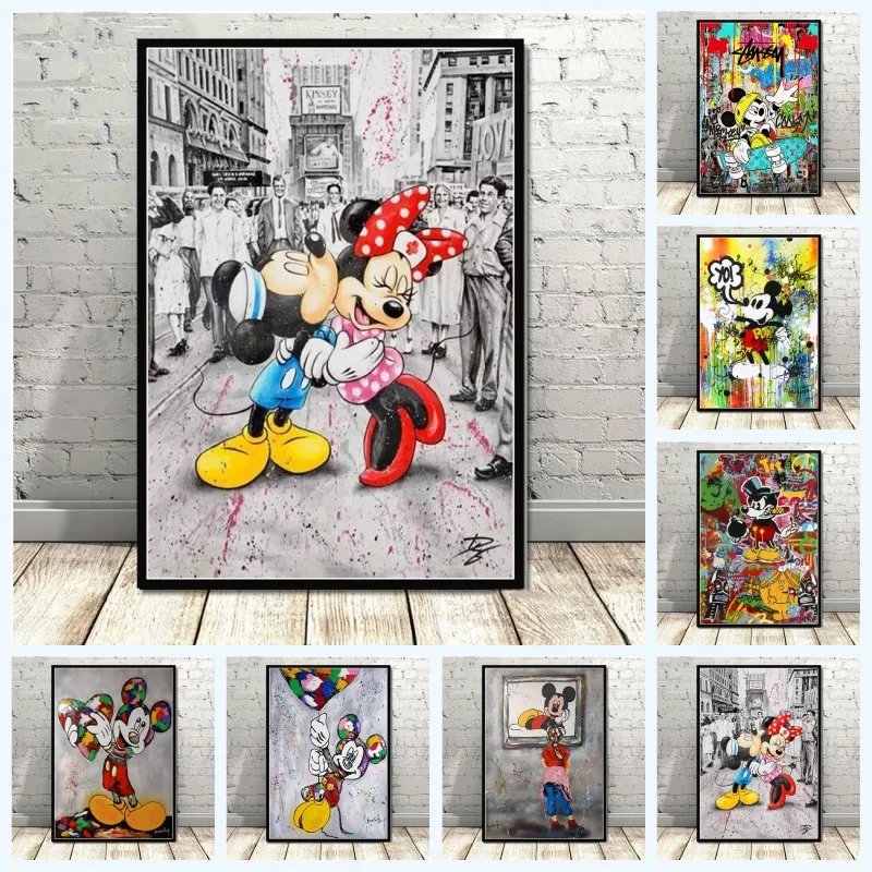 Картина на холсте с изображением уличных граффити Диснея Микки и Минни, скандинавские постеры и принты, картины для гостиной, домашний декор