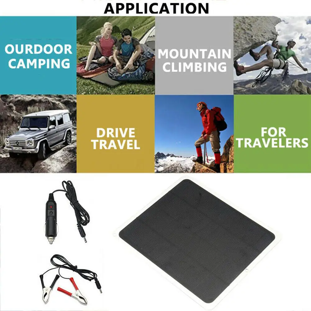 Особенности:-Его можно использовать в качестве альтернативного зарядного устройства для автомобилей, грузовиков, фургонов, лодок, мотоциклов, аккумуляторов RV или любых свинцово-кислотных батарей 12 В.-Водонепроницаемый, его можно разместить на улице.-В зажиме типа «крокодил» встроены диоды, которые помогают предотвратить обратную зарядку.-Вы можете установить этот элемент в свою машину и продолжать заряжать в течение дня.-В комплекте 2 зажима типа «крокодил» и зарядный кабель для всех видов оборудования, аварийных огней, рекламных огней, светофора, электрических вентиляторов, водяных насосов на солнечных батареях, мотоциклов, лодок и т. д.Характеристики:Максимальная мощность (Pmax): 20 ВтМаксимальное напряжение питания (Vmp): 18 вМаксимальный ток мощности (ИМП): 1,2 АКоличество ячеек: 32 шт.Выход: USB 5 В и 18 В постоянного токаПанель: монокристаллический силиконРазмер: около 210*175*2,5 мм/8,27*6,89 * 0.1inВес нетто: около 0,22 КГНапряжение холостого хода: 14 В постоянного тока и USB 5,2 вНапряжение нагрузки: 12 В постоянного тока и USB 5,0 вВыходной ток: 600 мА (макс.)Выход USB2.0: 5 В, мАИнструкции:1. Во-первых, поверхность солнечной панели обращена к солнцу, а поверхность заднего выхода USB имеет красный светильник, указывающий на нормальный выход тока.2. Подключите Кабель USB 2,0 к выходному порту USB, а стандартное выходное напряжение USB-5,0 в постоянного тока.3. Подключите Зажим постоянного тока типа «крокодил», и зажим типа «крокодил» выдает напряжение постоянного тока 12 В (14 в без нагрузки). Примечание: положительные и отрицательные зажимы крокодила нельзя подключить или прикоснуться во время использования, что может вызвать кратковременное нагревание или сжечь леску.4. С сумкой для альпинизма этот продукт подходит для маломощных продуктов с источником питания 5 В или маломощных продуктов с источником питания 12 В.Советы:1. Пожалуйста, не царапайте поверхность солнечной панели острым предметом.2. При зарядке зарядного устройства с помощью солнечной энергии поместите солнечную панель вверх под прямыми солнечными лучами, чтобы обеспечить эффект зарядки.3. Пожалуйста, не ставьте зарядное устройство на открытом воздухе в дождливые дни, чтобы избежать короткого замыкания. Передняя часть солнечной панели водонепроницаема, но лучше не попадать в воду через USB и DC интерфейсы.Список:1 * солнечная панель1 зажим типа «крокодил»