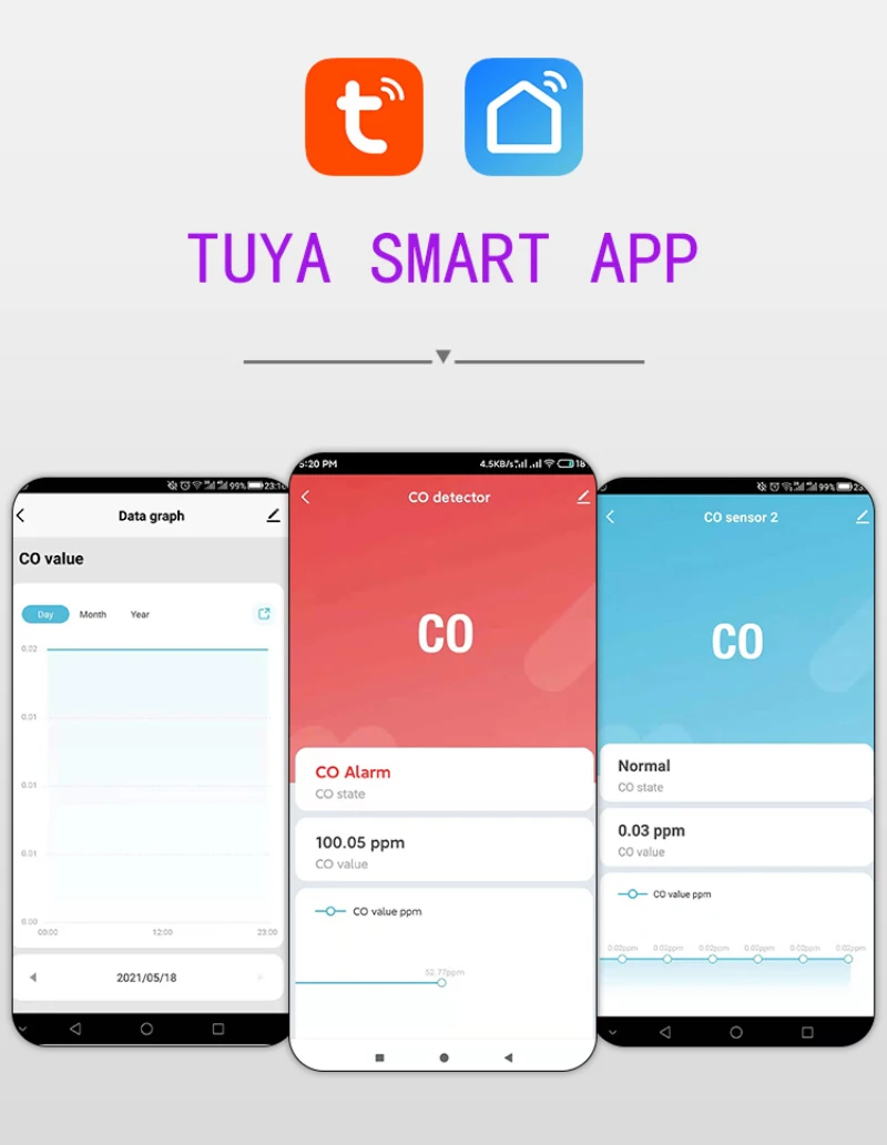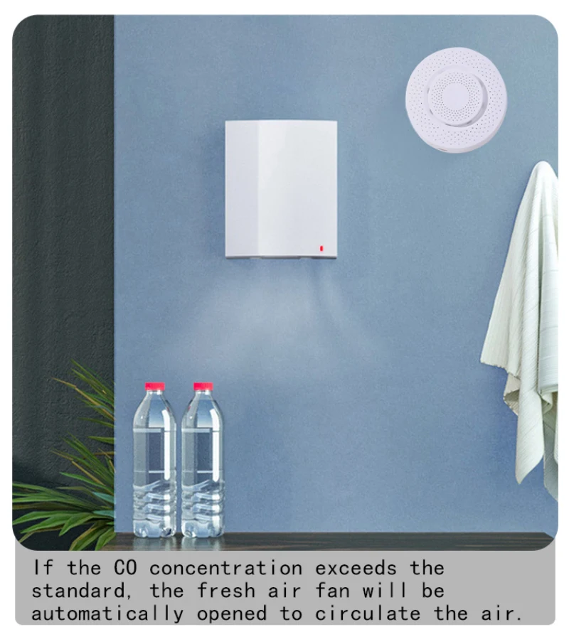 Co box связь с Tuya APP функция автоматизации другого оборудования в комнате (например, кондиционер воздуха, новый вентилятор, очиститель воздуха, увлажнитель воздуха и т. Д.) после достижения предварительно установленного порогового автоматического управления.