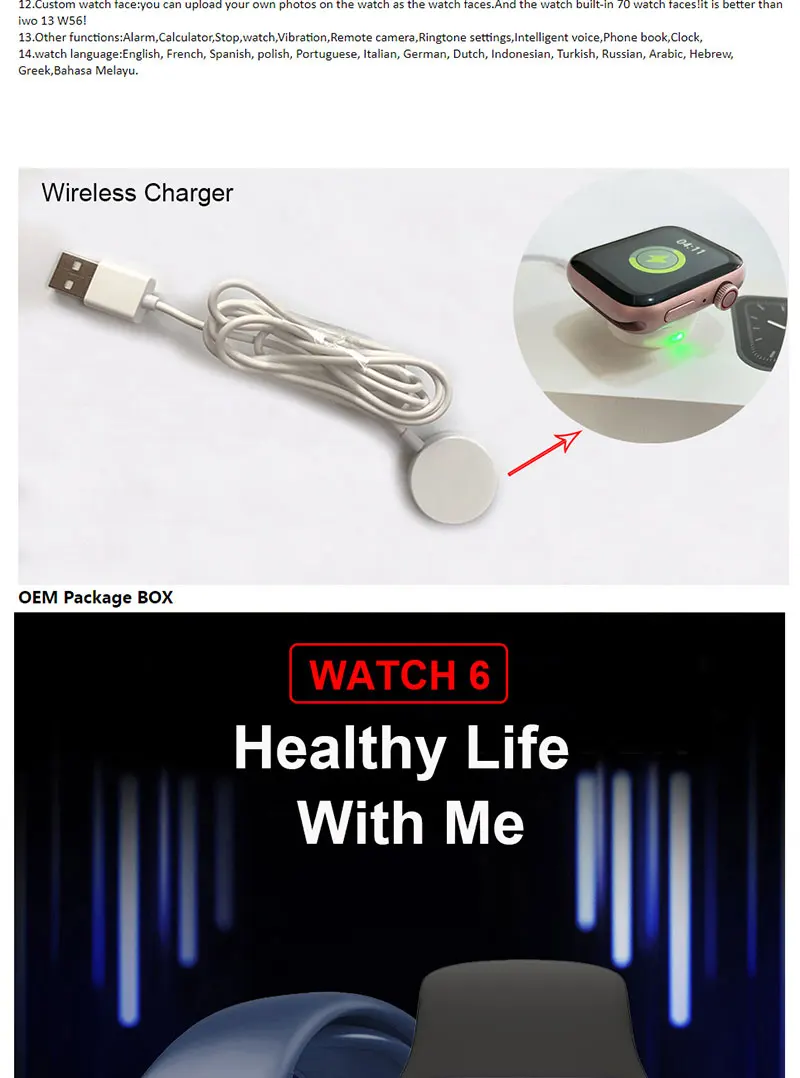 IWO68 Смарт-часы серии 6 Беспроводное зарядное устройство Bluetooth...