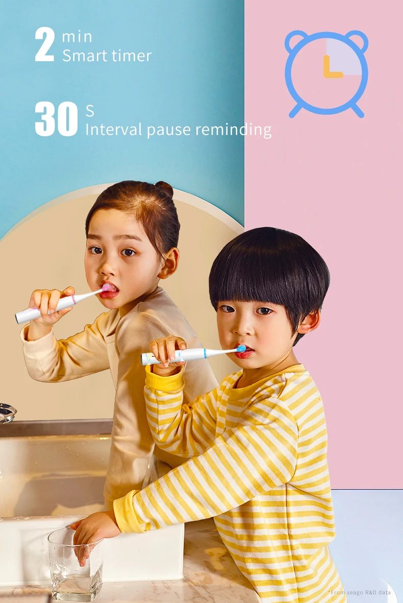 Seago SG-567, детская звуковая электрическая зубная щетка, USB перезаряжаемая, Тип C, От 3 до 12 лет, безопасная автоматическая зубная щетка с 2 сменными головками