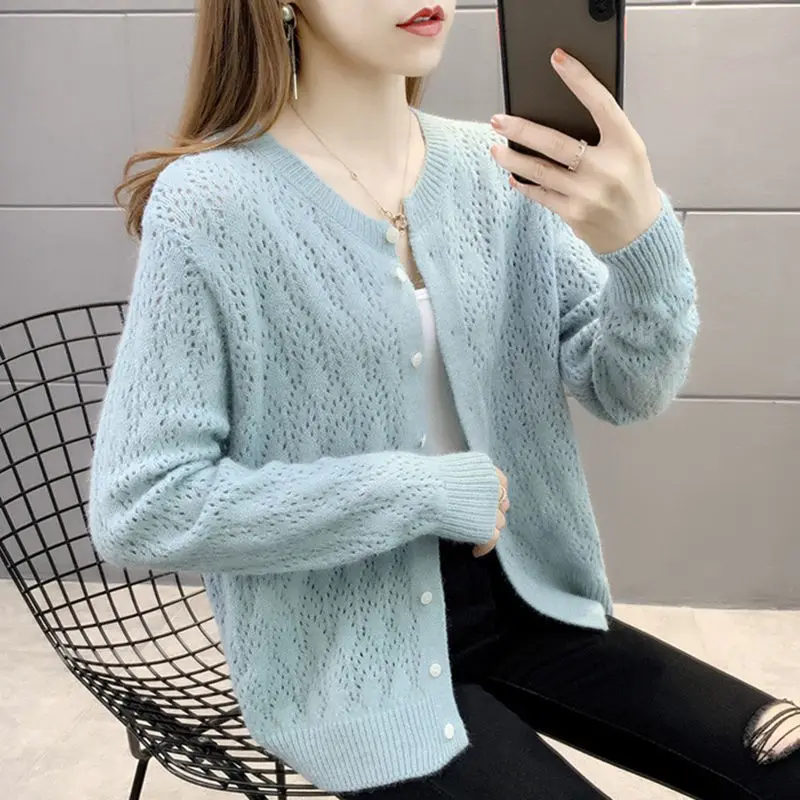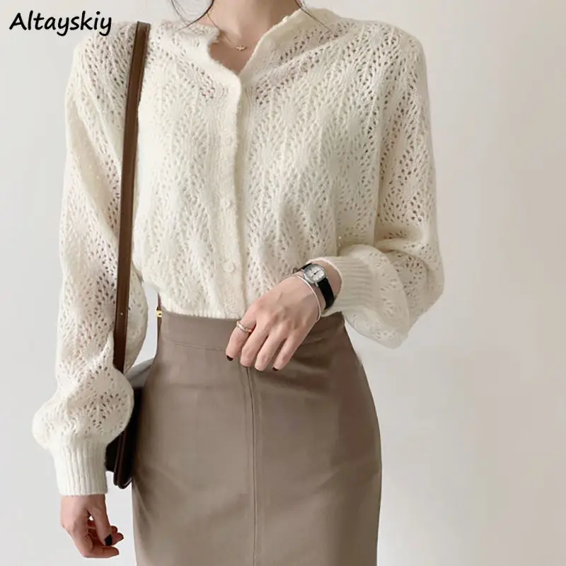 Женский ажурный кружевной вязаный свитер, элегантный однобортный Св...