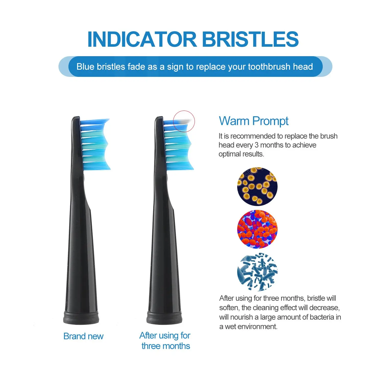 Закругленный верх щетины для безопасности и защиты. Обратите внимание, что он может использоваться только с seago SG-507B/908/909/917/610/659/719/910 для Fairywill FW-507 FW-508 FW-917 Sonic зубная щетка, вращающаяся зубная щетка и другие бренды не могут быть использованы, пожалуйста, приобретите после подтверждения модели.