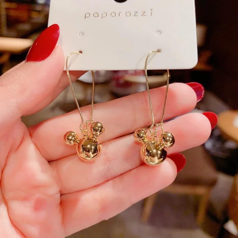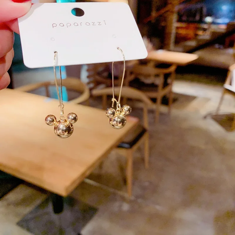 Новинка 2021, Подвесные серьги в виде Микки из мультфильма, женские серьги, ювелирные изделия, серьги Минни