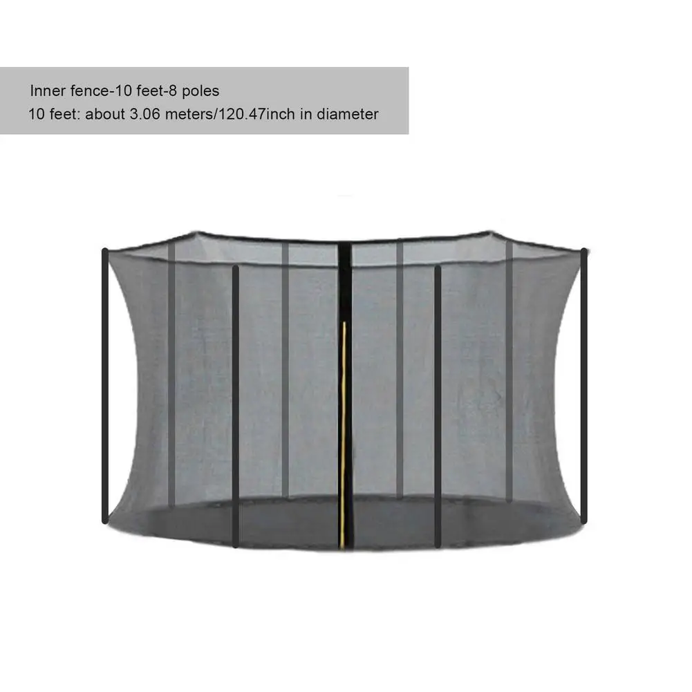 Точки пули:1. Простота установки: подходит для батутов диаметром от 10 футов до 14 футов, легко устанавливается и разбирается.2. Безопасно для использования: двойной закрытый вход с молнией и пряжкой, может быть открыт внутри или снаружи для максимальной безопасности.3. Прочный и тонко сплетенный: сетка высокой плотности делает ее более прочной. Сетка тонко сплетена, чтобы маленькие пальцы не оказались в ловушке.4. Приятный Размер: высота защищающей сети батута составляет около 170 см/66,93 дюйма, что может предотвратить прыжки детей за пределы батута.5. Лучшая защита: батутные сети обеспечивают лучшую защиту для детей от травм. Предотвращение несчастных случаев.Характеристики:Название: защитная Внутренняя сетка для батутаМатериал:Рукав трубы: PEЗащитная сетка: полиэтиленВысота: около 170 см/66,93 дюймаЦвет: черныйРазмер:Внутренний забор-10 футов-6 полюсовВнутренний забор-10 футов-8 полюсовДиаметр:10 футов: около 3,06 метров/120,47 дюйма в диаметреВес: 10 длина стопы около 1,2 кг
