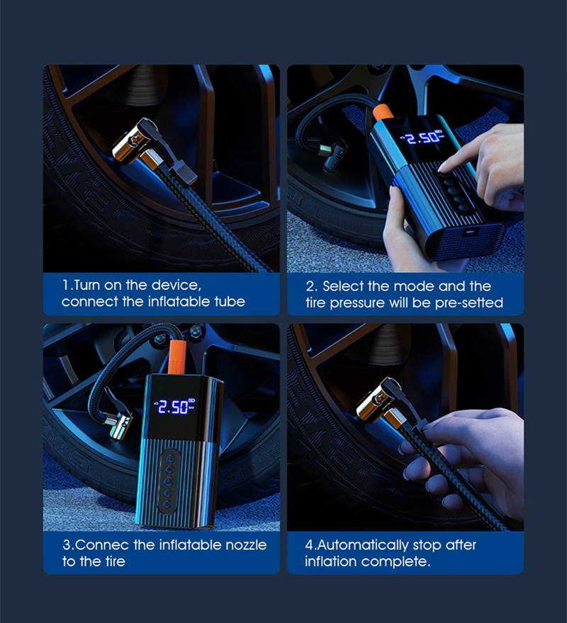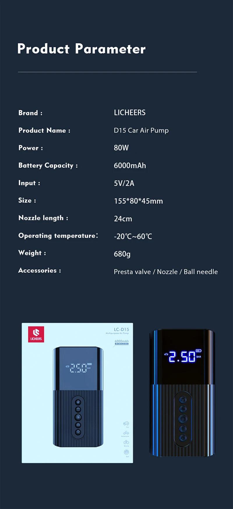 Автомобильный воздушный насос с компрессором, 6000 мАч, 80 Вт, 12 В