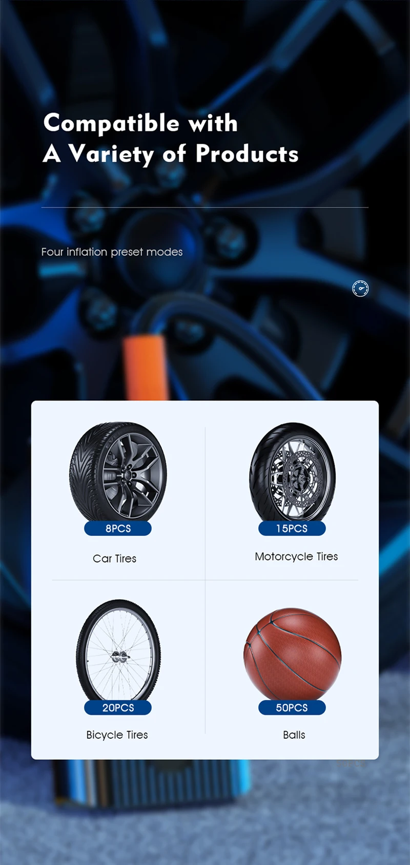 Автомобильный Электрический насос 12 В, светодиодное освещение, портативный беспроводной воздушный компрессор для шин, насос для автомобиля, мотоцикла, велосипеда, шары