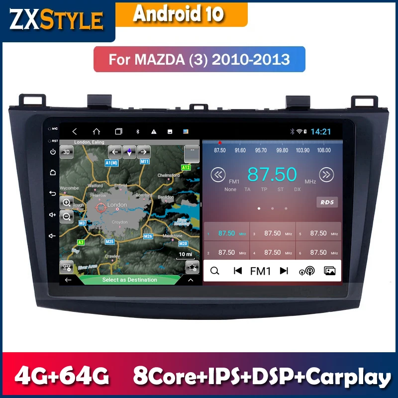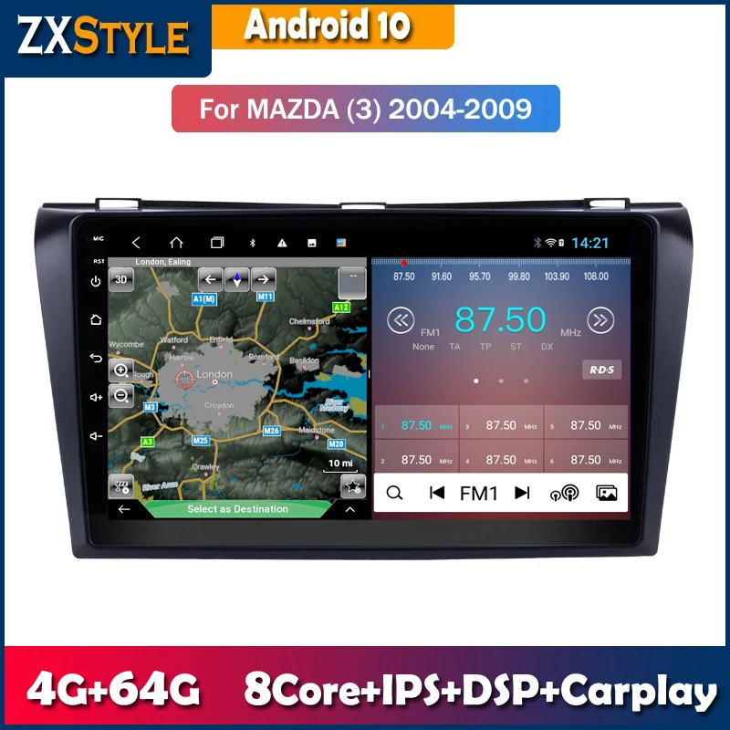 Автомобильный мультимедийный плеер на Android 10,0 для Mazda 3 BK Mazda3 2004-2013, Авторадио с GPS-навигацией, Wi-Fi, IPS экраном, стерео RDS