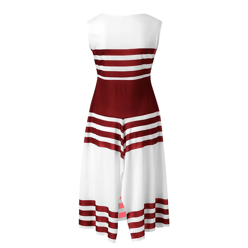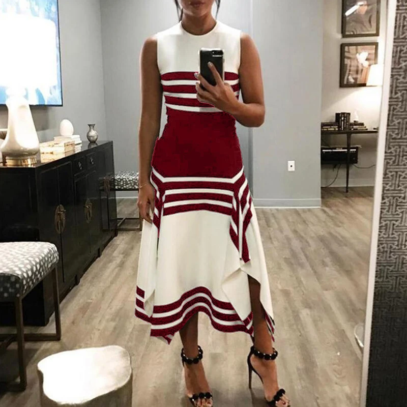 Женское асимметричное платье в полоску, повседневное длинное платье без рукавов с круглым вырезом, лето 2021