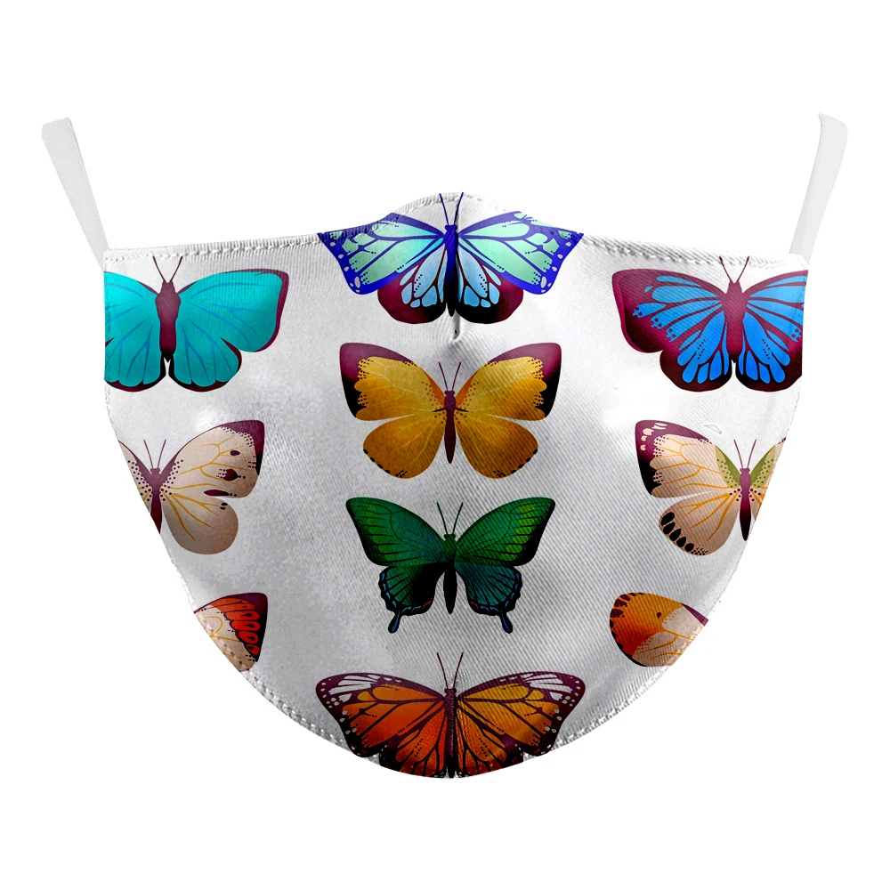 Ветрозащитные маски для рта, моющаяся модная уличная ветрозащитная хлопковая маска для рта с принтом бабочки, моющаяся Тканевая маска для лица