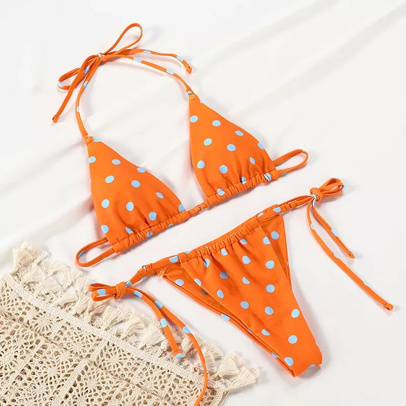 Характеристики: треугольный бюстгальтер + трусики-стринги с эластичным регулируемым ремешком