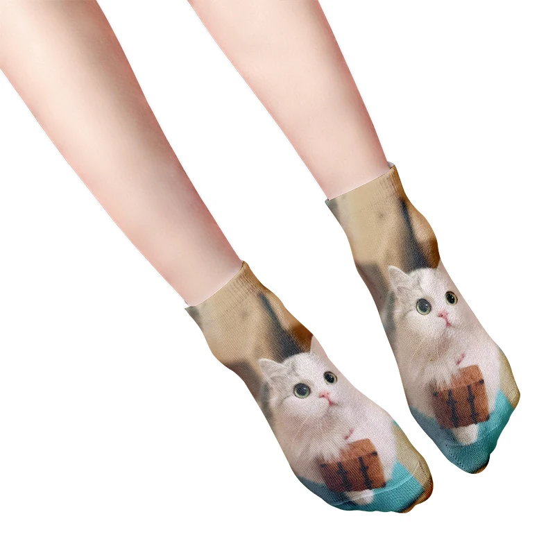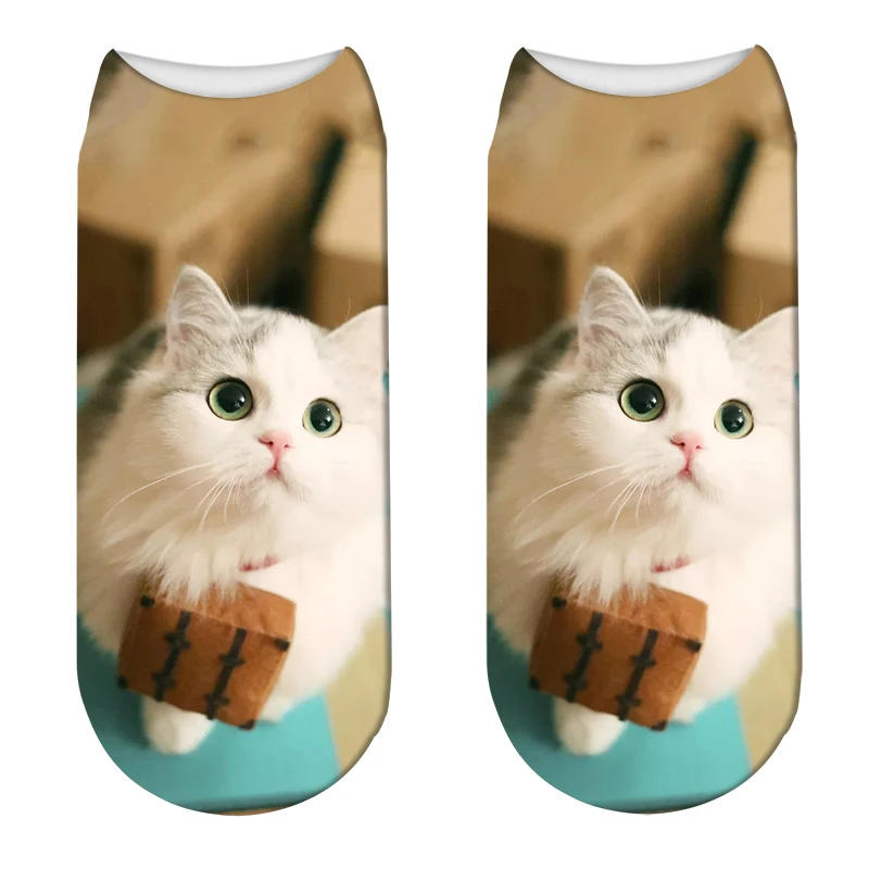 Новинка, забавные носки унисекс в стиле Харадзюку С 3D-принтом котя...