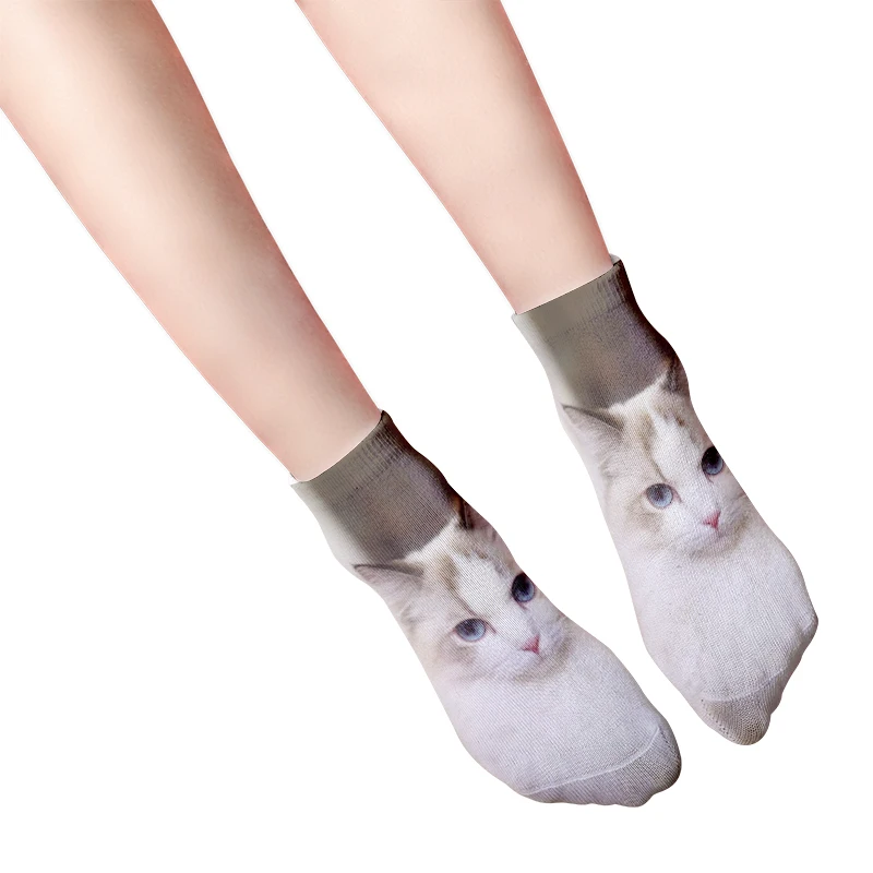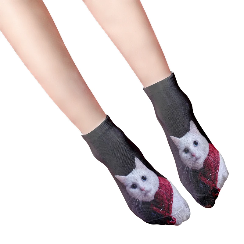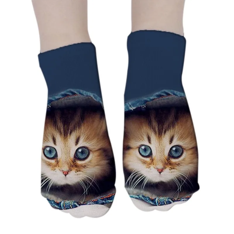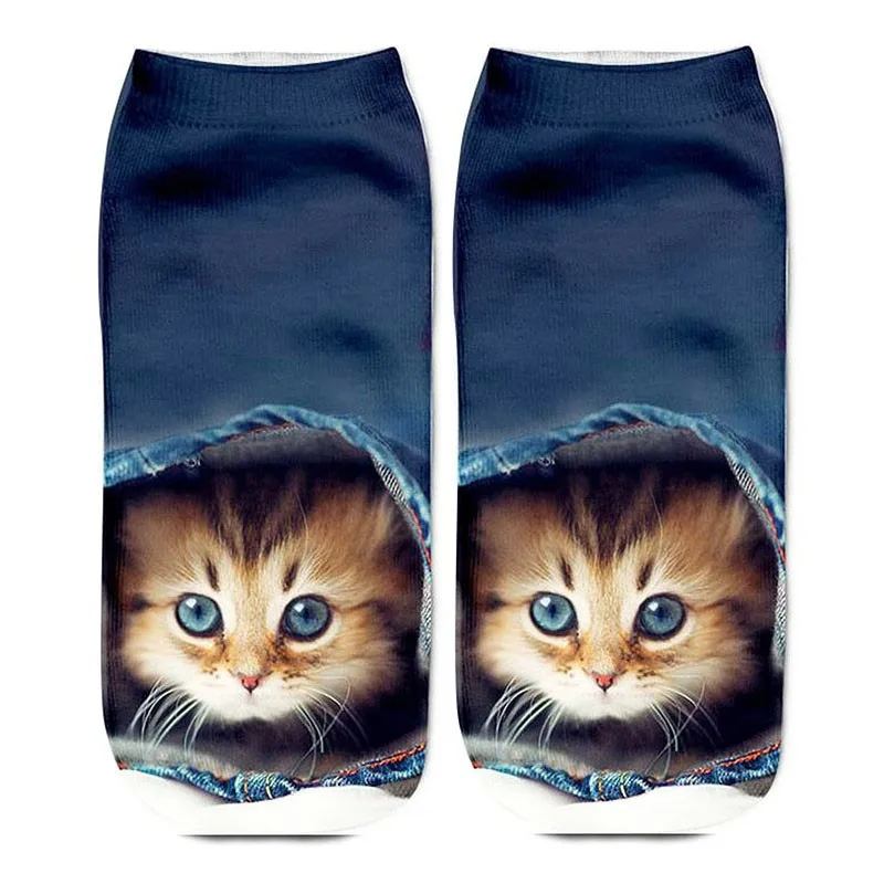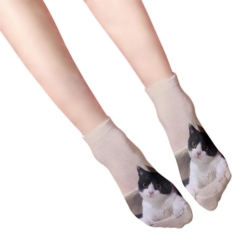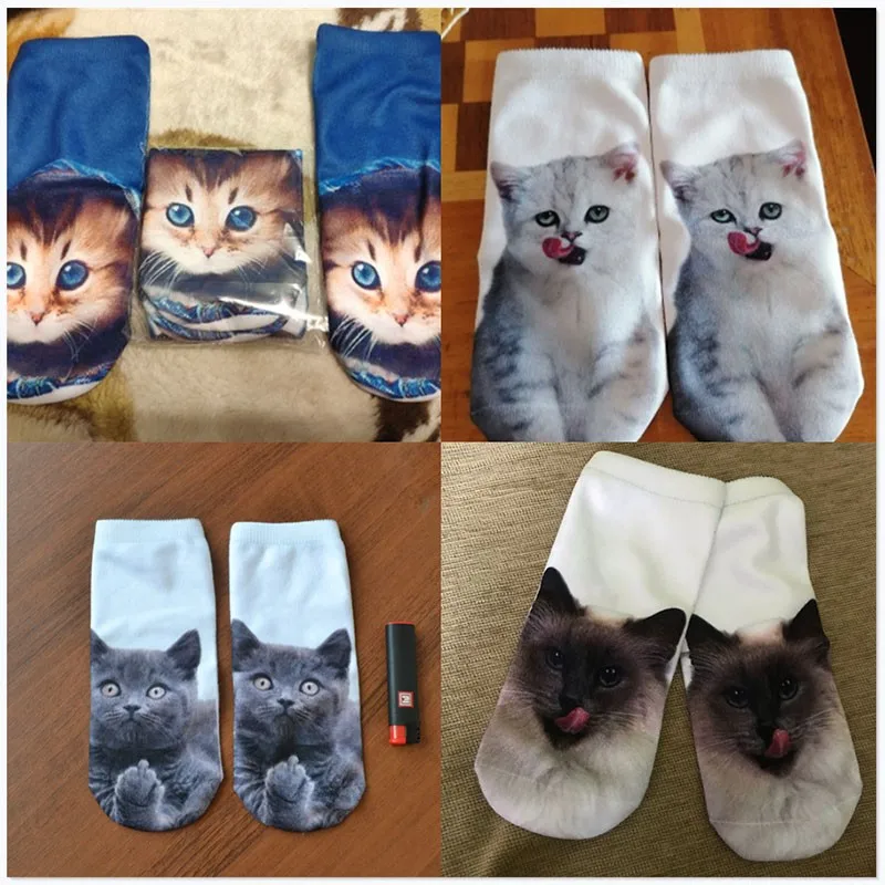 Женские милые животные, милые 3D рисунки, необычные красочные носки унисекс с различными лицами кошки