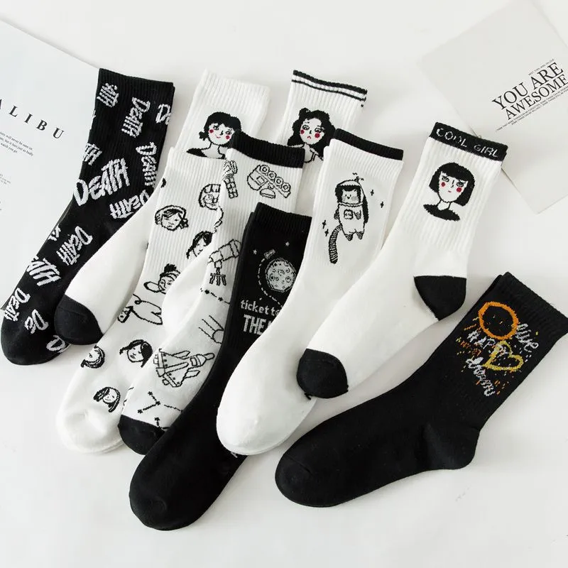 Новинка 2021 1 пара осенние черные и белые спортивные женские носки хлопковые милые зимние носки женские носки астронавт