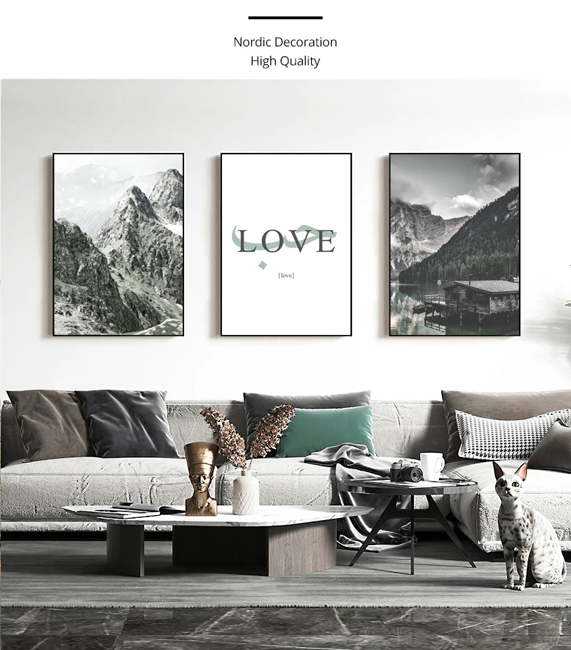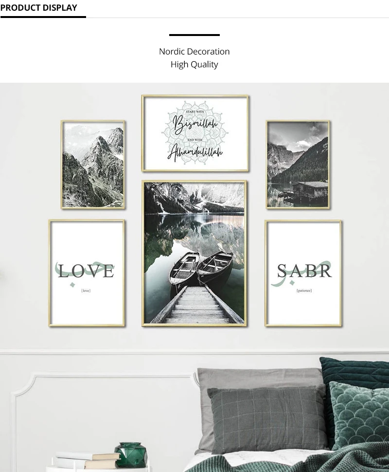 Настенная картина с мусульманскими цитатами, настенный постер с изображением гор, озера, ландшафта, декоративная картина в скандинавском стиле, украшение для дома