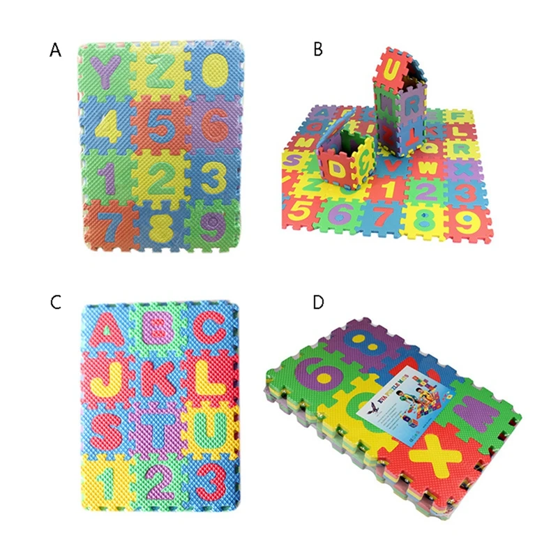 Детская игрушка, игровой коврик с алфавитом и цифрами, 36 плиток, 12X12 дюймов, игрушка с полным покрытиемНазвание продукта: детский коврикРазмер продукта: A:6*6 см B:12*12 см C:5*5 см D:14*14 смРазмер упаковки: A: 17,8 *