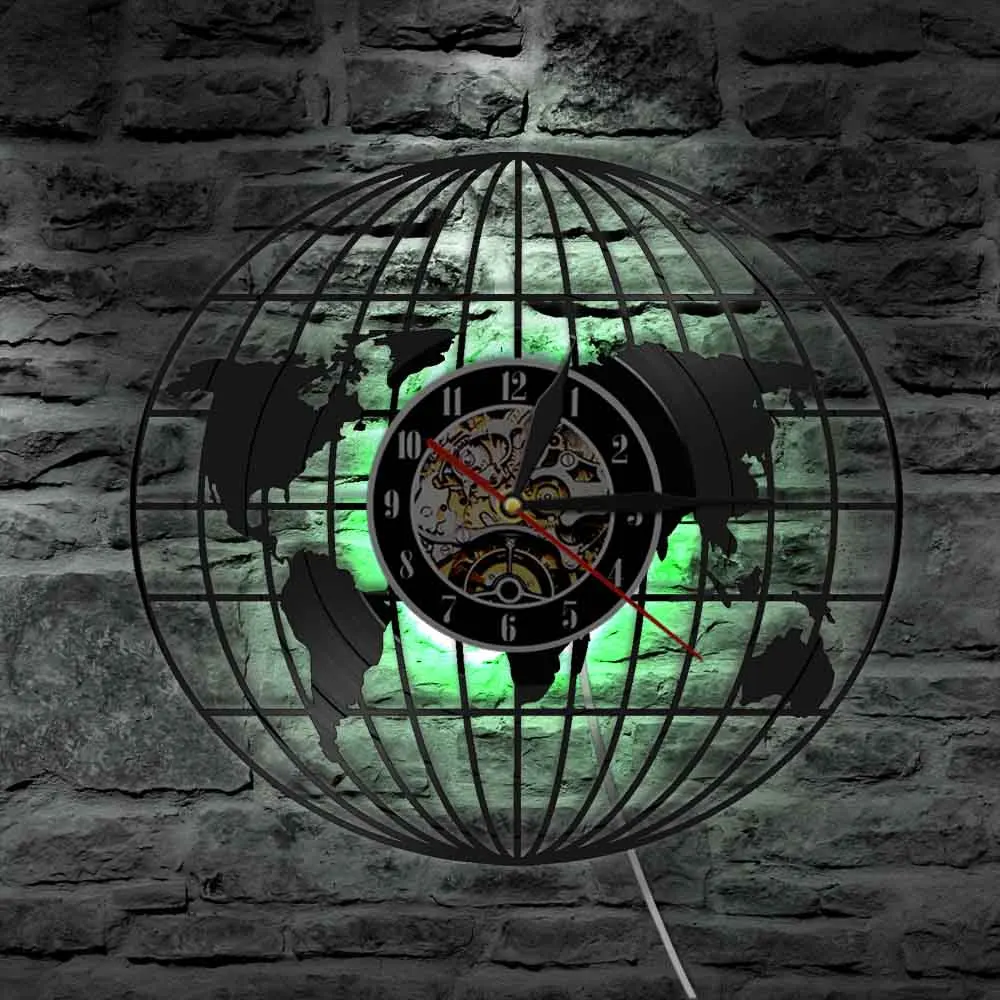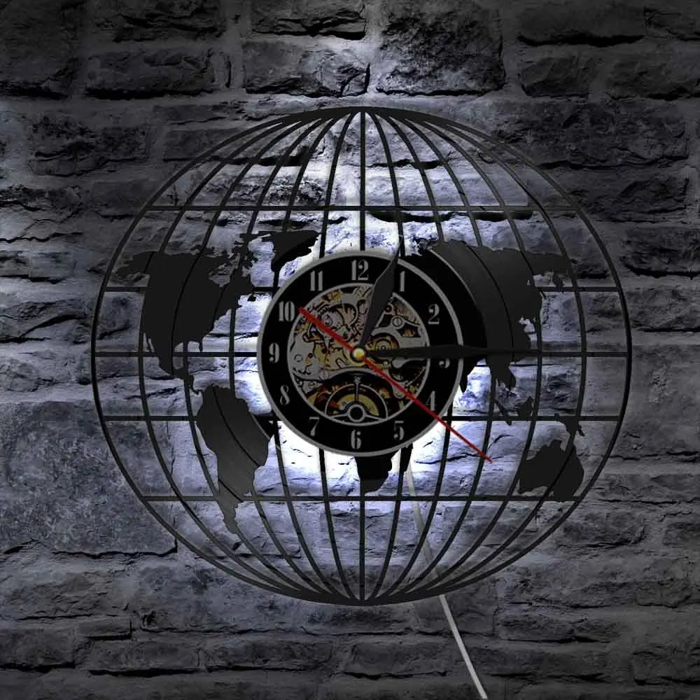 Настенные 3d-часы с глобусом, винтажные настенные часы со встроенной виниловой пластиной, на батарейках, подарок для путешествий