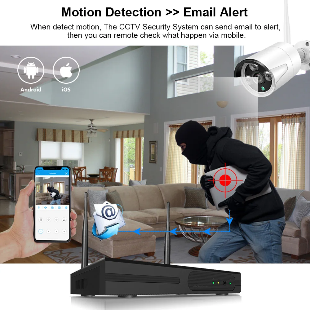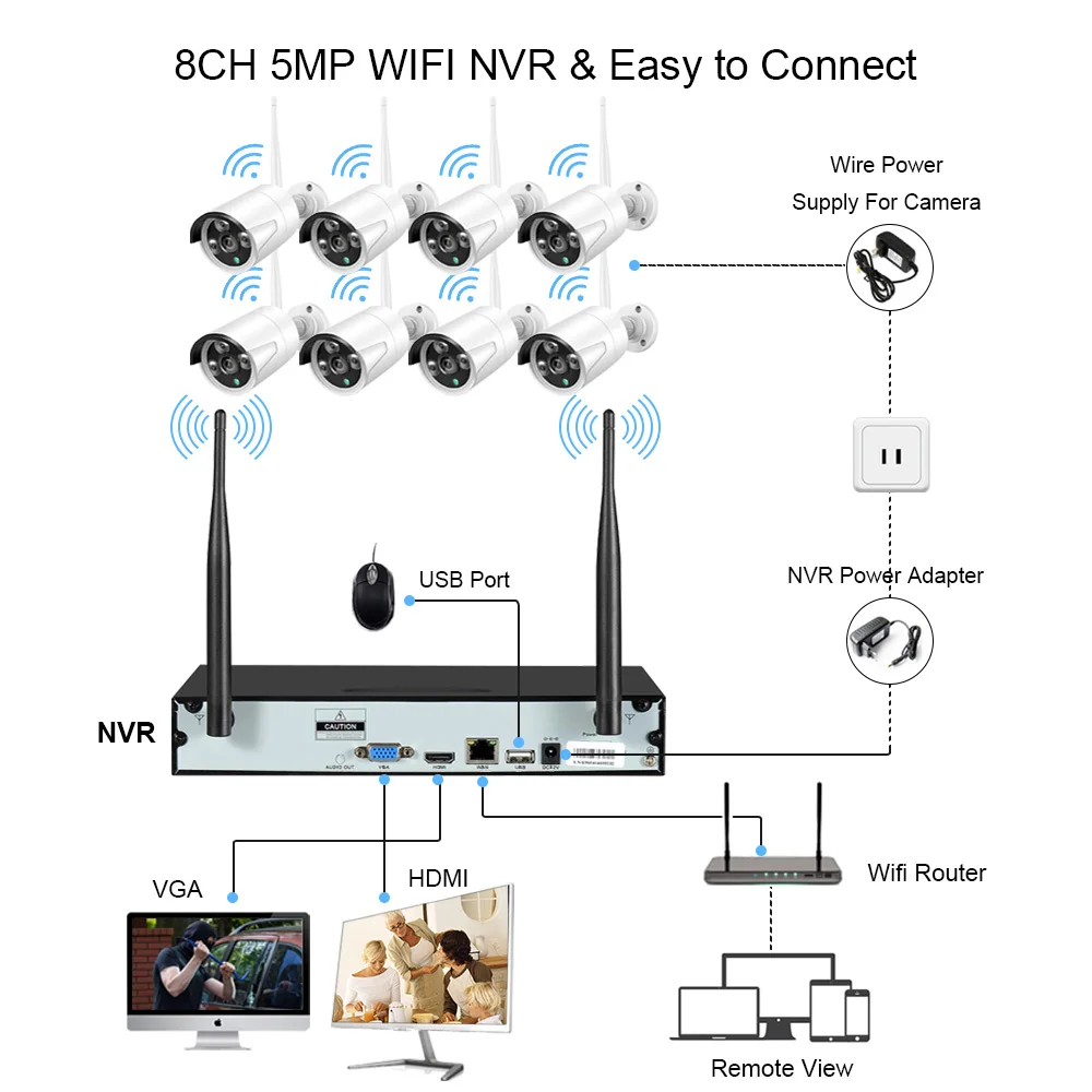 Комплект видеонаблюдения, 5 Мп, 8 каналов, беспроводной сетевой видеорегистратор 2 ТБ, 48 шт., наружные ИК-камеры ночного видения, IP, Wi-Fi, система видеонаблюдения
