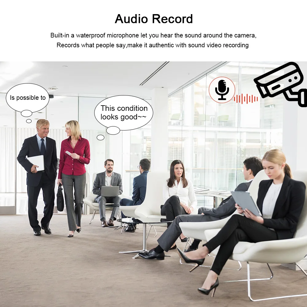 Встроенный водонепроницаемый микрофон позволяет слышать звук вокруг камеры, записывать разговоры людей, делать его достоверным с помощью записи звука и видео