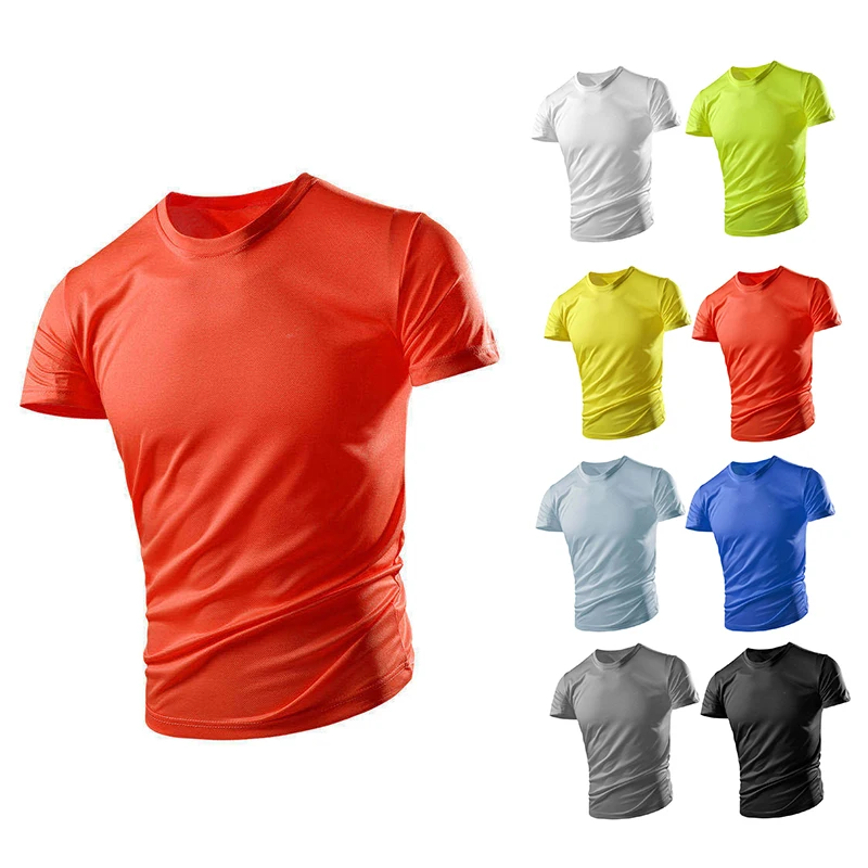 Новая мужская льда шелка с короткими рукавами футболка быстросохнущие одежда летние однотонные Цвет дышащие свободные размера плюс спортивная одежда