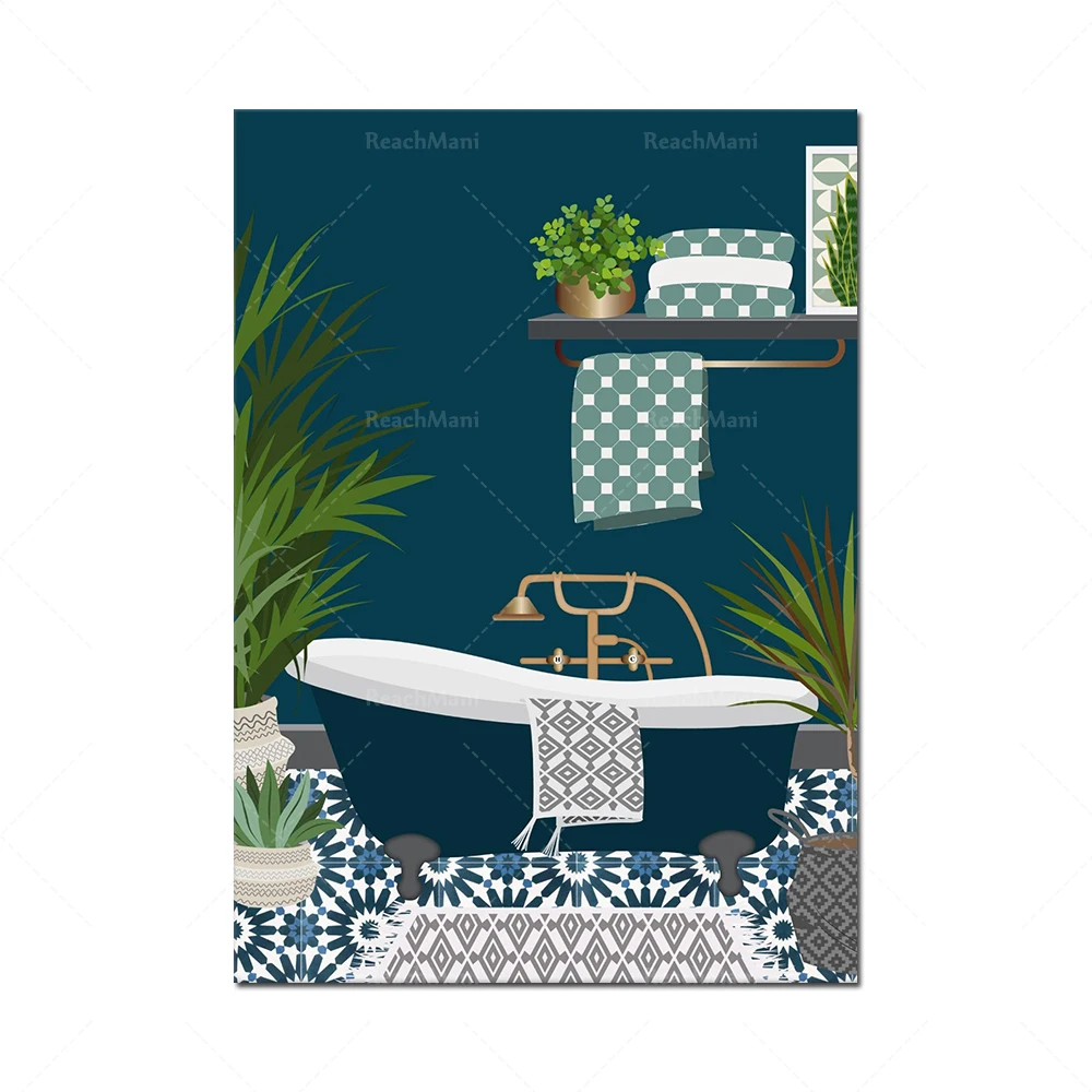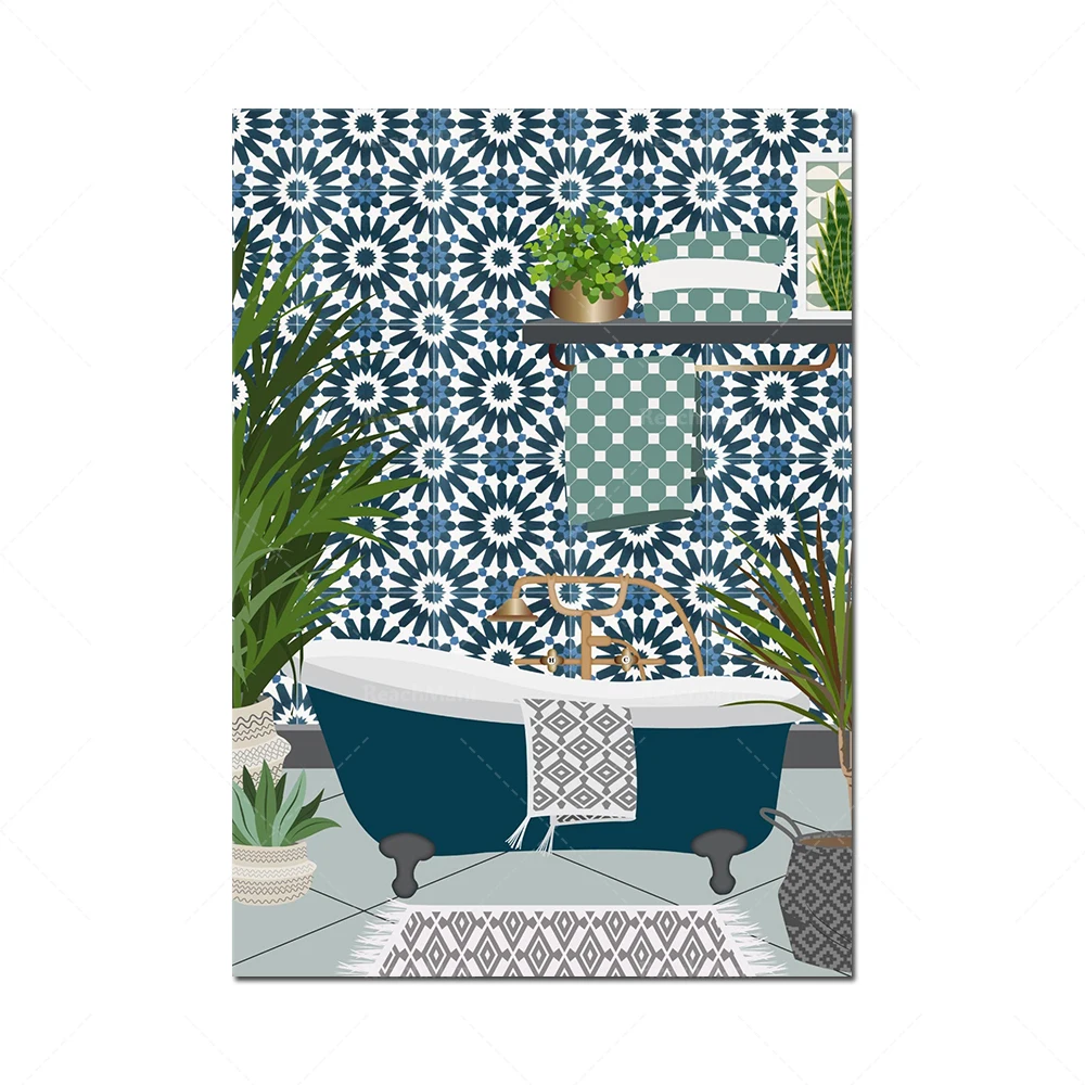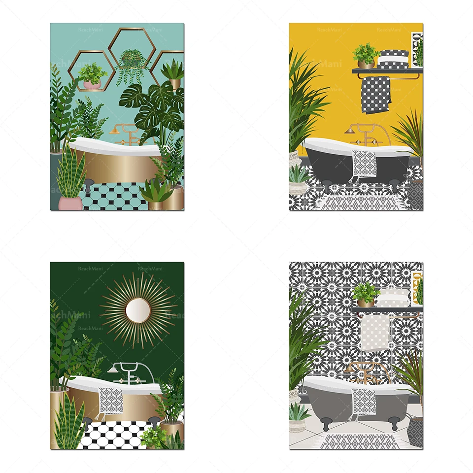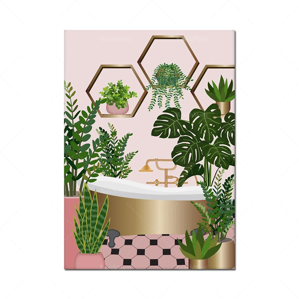 Зеркальная и растительная печать Sunray для ванной комнаты, ботанический принт для ванной комнаты, принты из розового золота, печать марокканской плитки для ванной комнаты, красивый Ba