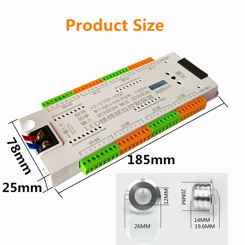 Контроллер светодиодного датчика движения для лестницы, 12 В, 24 В, 32 канала