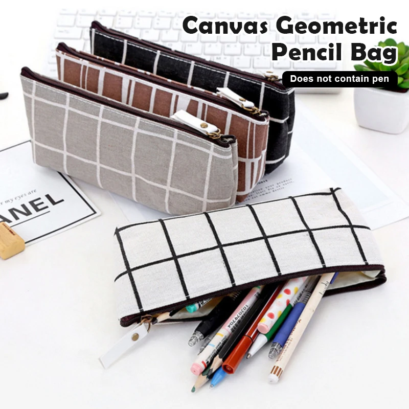 Холщовый чехол для карандашей с геометрическим рисунком, простой однотонный милый чехол в полоску и сетку для школы и офиса, студентов, Детские принадлежности