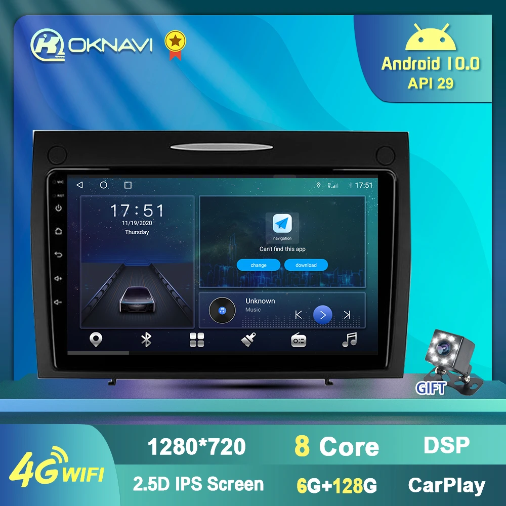 Автомагнитола 2 Din, Android 10, для Mercedes-Benz SLK-Class SLK Class R171 2004-2011, GPS-навигация, DVD, 4G, камера, Wi-Fi, без DVD плеера