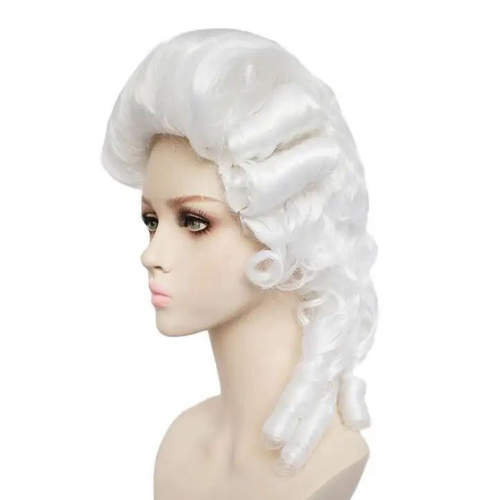 Женский парик для косплея, 16-дюймовый белый юриста, судьи, вьющийся исторический костюм в стиле барокко, реквизит для косплея