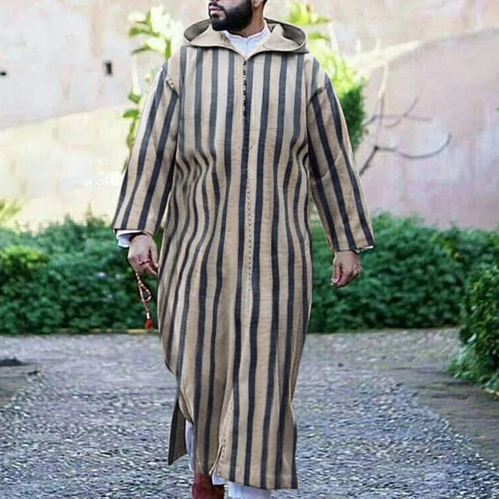 Кафтан мужская одежда в полоску с капюшоном Этническая абайя мусуль...