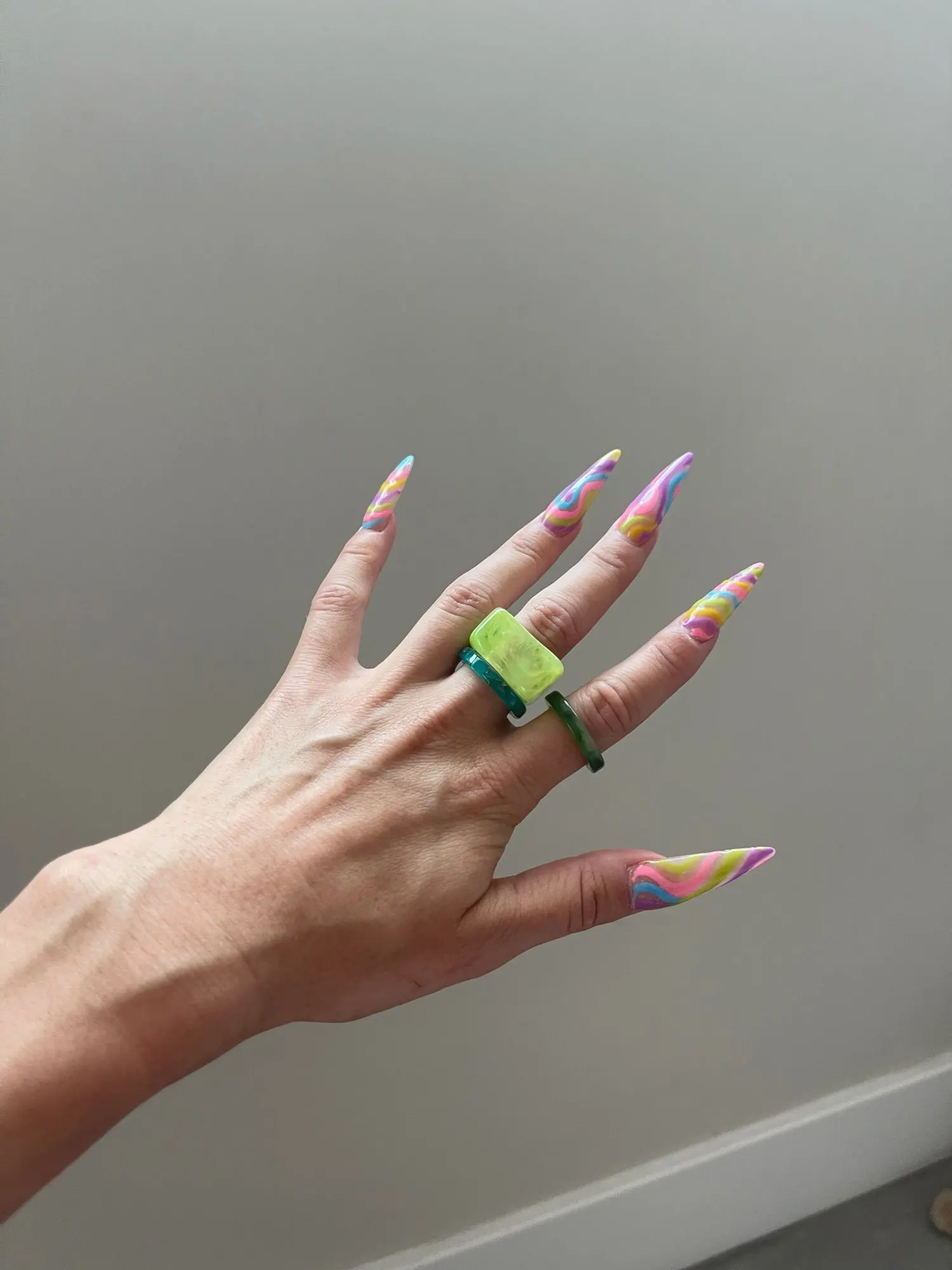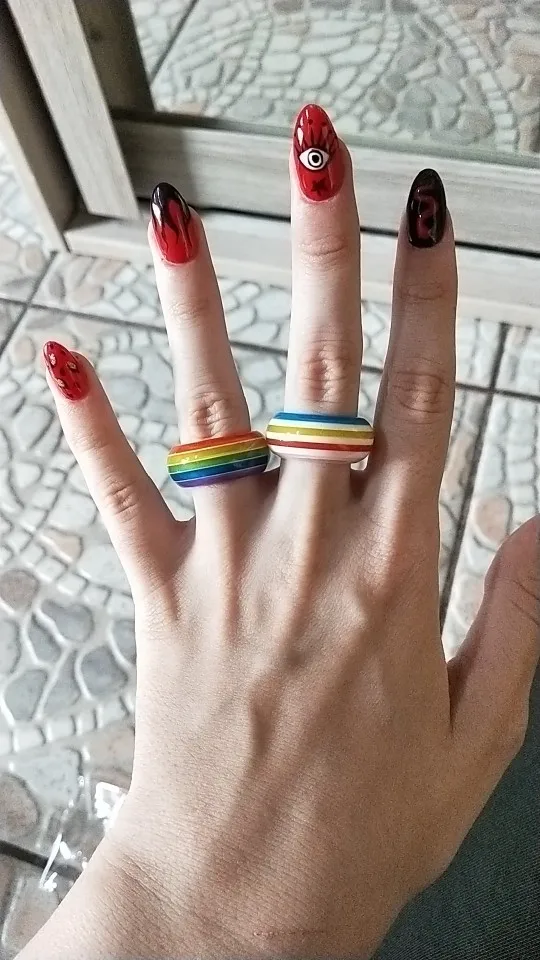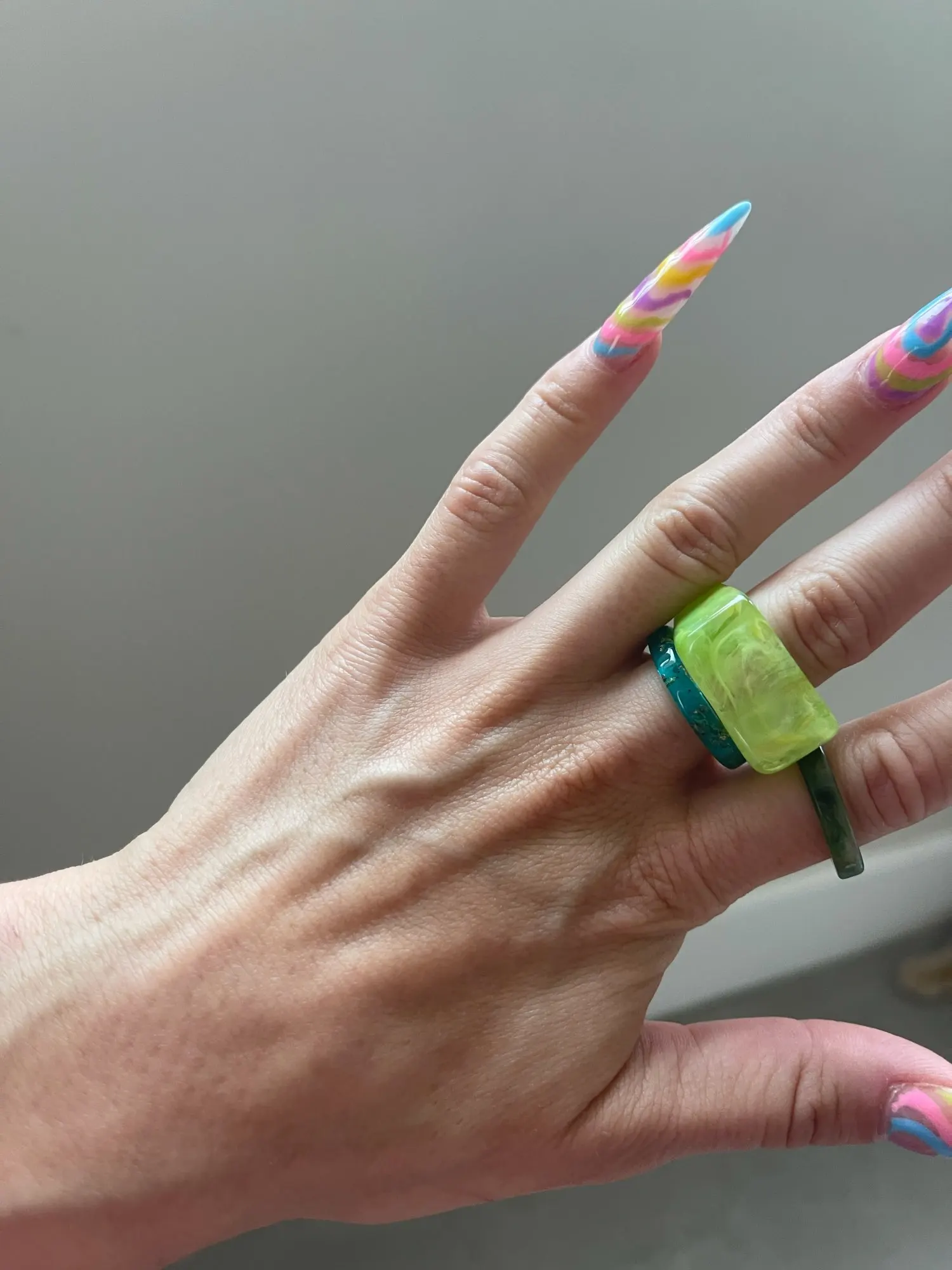 Хотел бы я обратить внимание на размеры lmaoo, они размером 6,5 6,2 и 5,5. Они маленькие для моих пальцев, но я все еще могу носить их не весь путь вниз на моем пальце. Они действительно милые и соответствуют размеру! Они также быстро прибыли ty <3