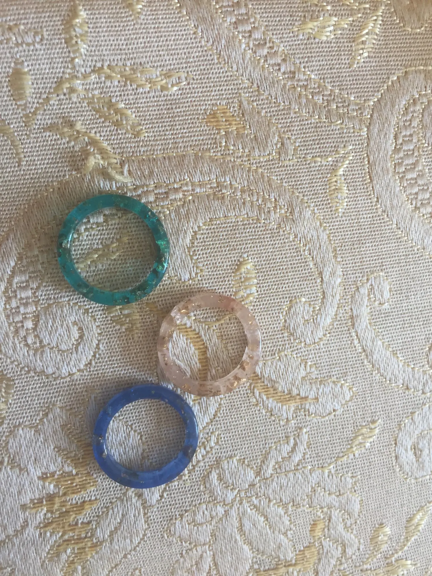 красивые колечки, но лично мне не понравились, если носить с чем-то, эффект от них будет. А так выглядят на руке броско, большевато.