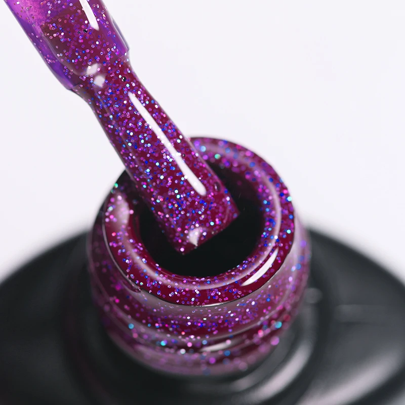 Гель-лак для ногтей, полуперманентный, фиолетовый, с блестками
