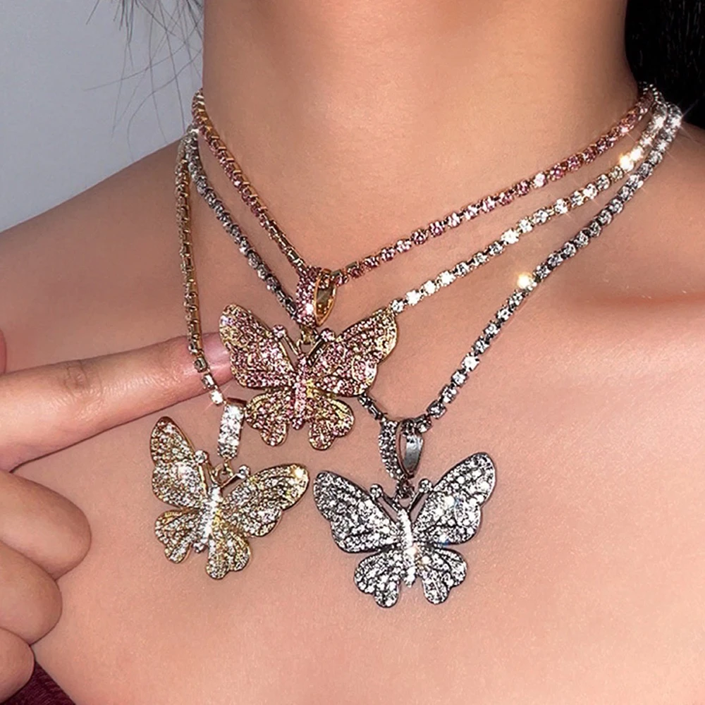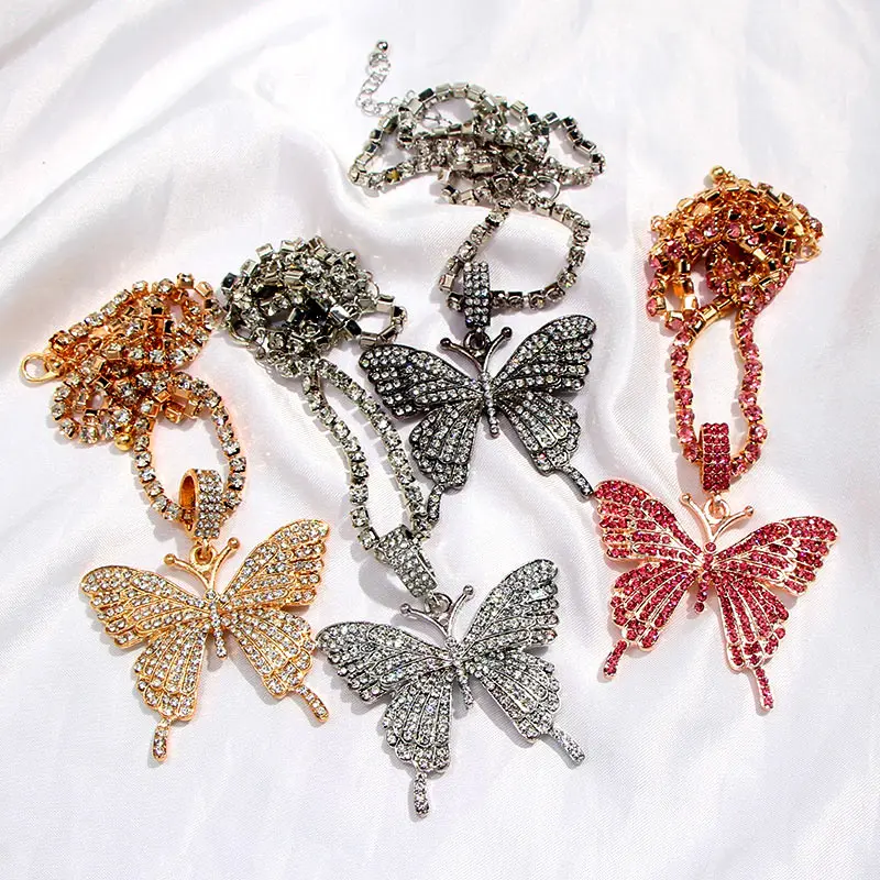 Новые Блестящие Кристаллы Стразы Подвеска бабочка цепь для тенниса ожерелье женские ювелирные изделия оптом большая бабочка массивный чокер