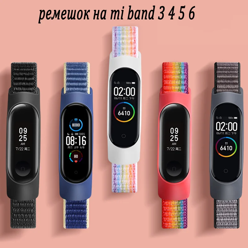 Цветной нейлоновый ремешок для Xiaomi Mi band 6 5 4 3, спортивный б...