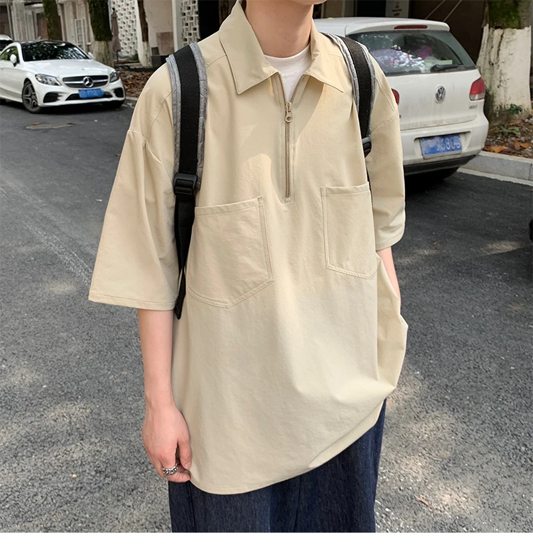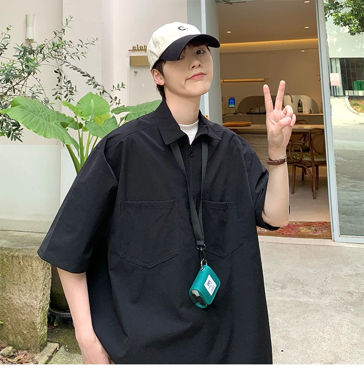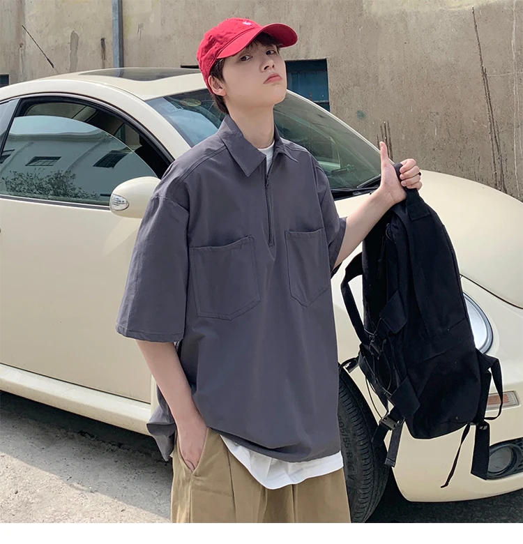 Футболка LAPPSTER мужская с отложным воротником, однотонная Повседневная тенниска в стиле Харадзюку, уличная одежда, свободная майка в стиле K-POP, винтажная рубашка, лето 2022