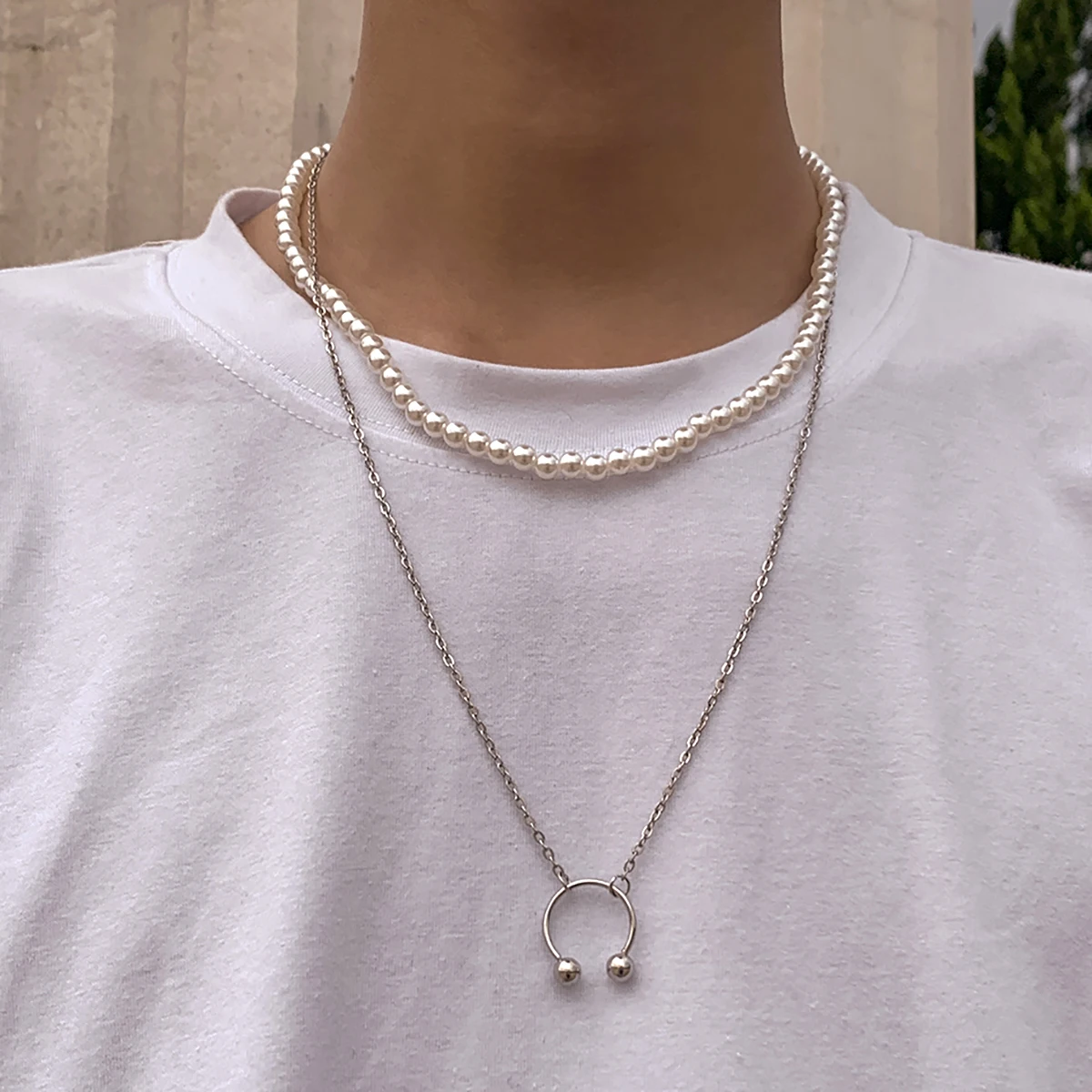 TypeLayered Pearl Thin Chain Necklace Set for Men