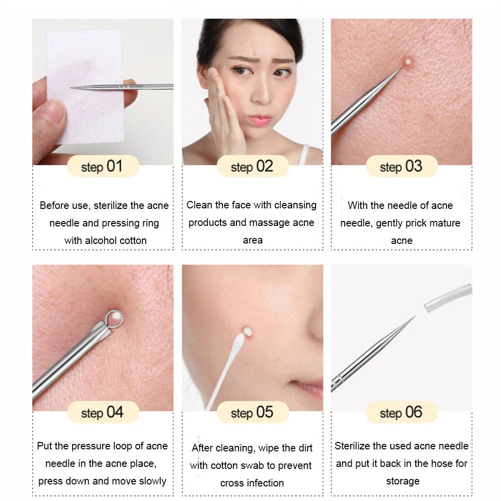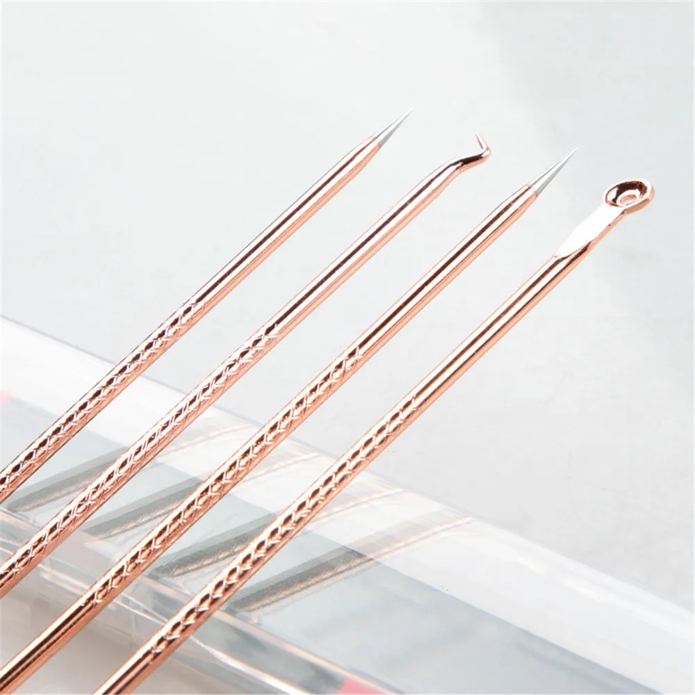 4 шт./компл. красочные металлические Нержавеющая сталь инструмент для удаления прыщей набор игл для удаления угрей комедонов крюк поры очищение, лечение акне инструменты